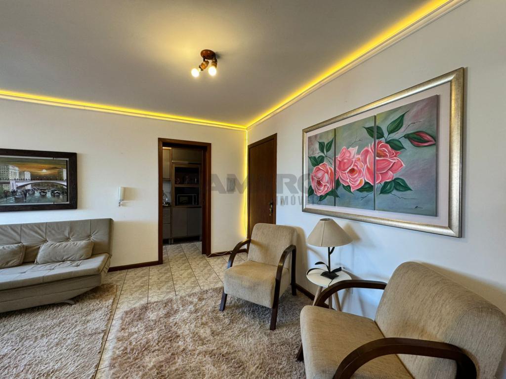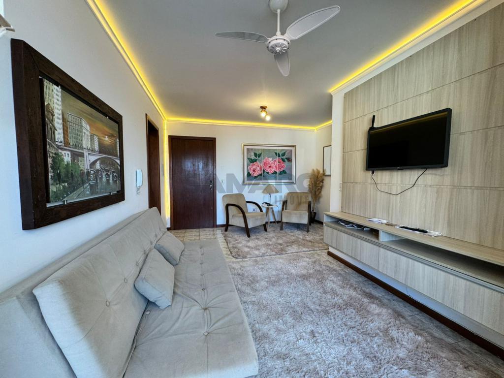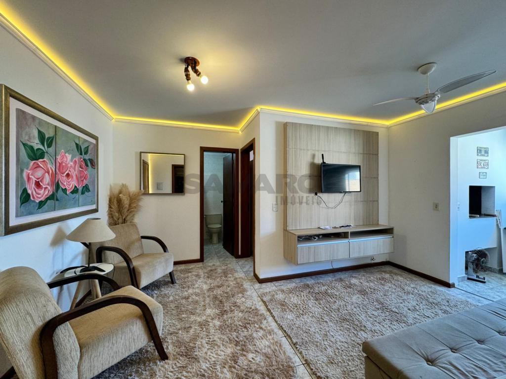 Apartamento de 1 quarto, living em dois ambientes, sacada lateral com churrasqueira, cozinha separada, banheiro soial.