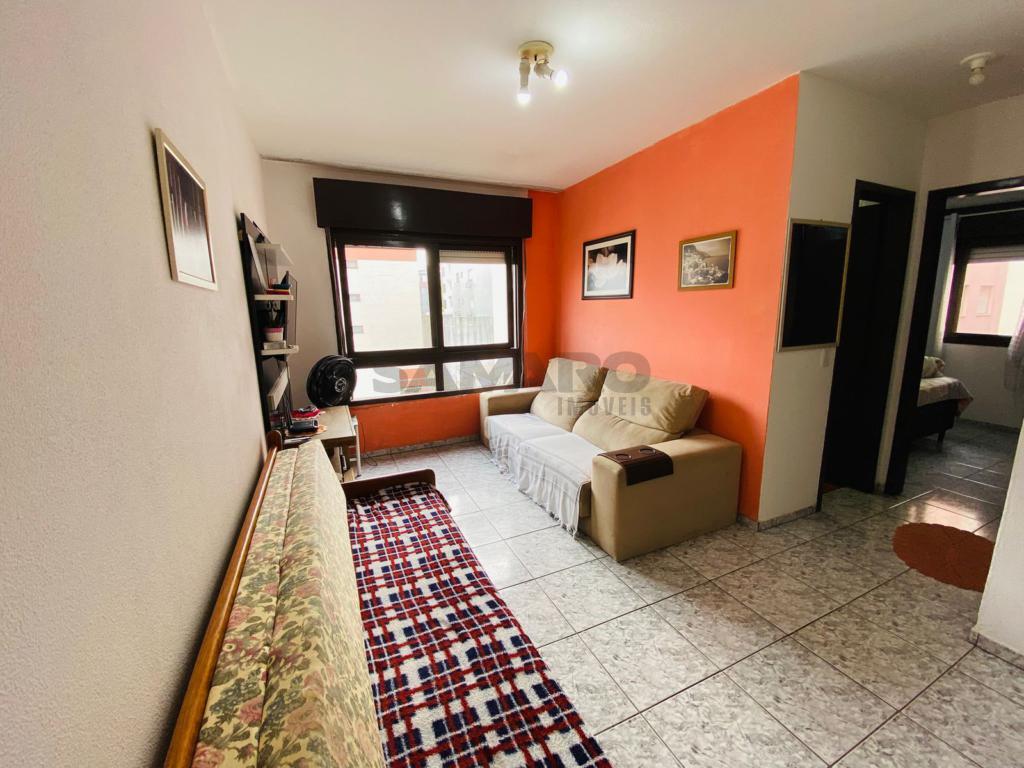 Apartamento de um dormitório, banheiro social, cozinha estar , jantar e não possui vaga de garagem.