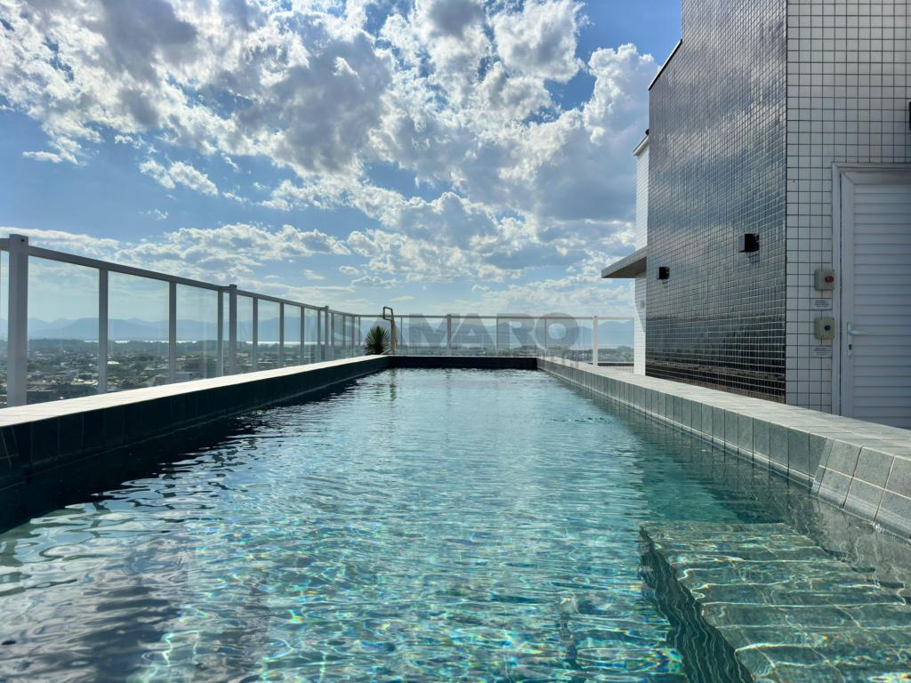 Prédio de esquina, alto padrão construtivo, com 15 andares, dois (02)elevadores, rooftop com piscina, salão de festas, hidrômetros individuais, piso porcelanato, espera para gás e água quente, área condominial com luz de presença, revestido. 100% com pastilhas. Hall de entrada decorado, zelador permanente, próximo a praça Flávio Boianovski, mar/praia.