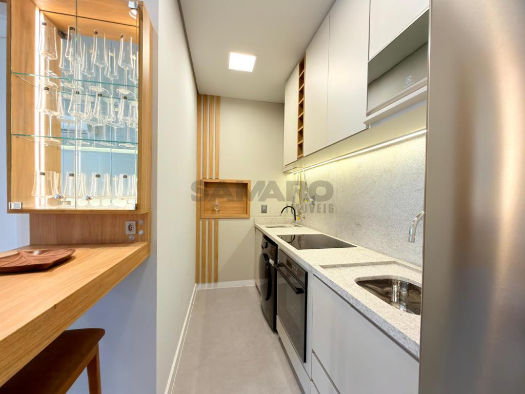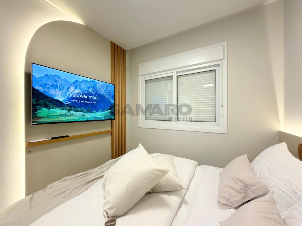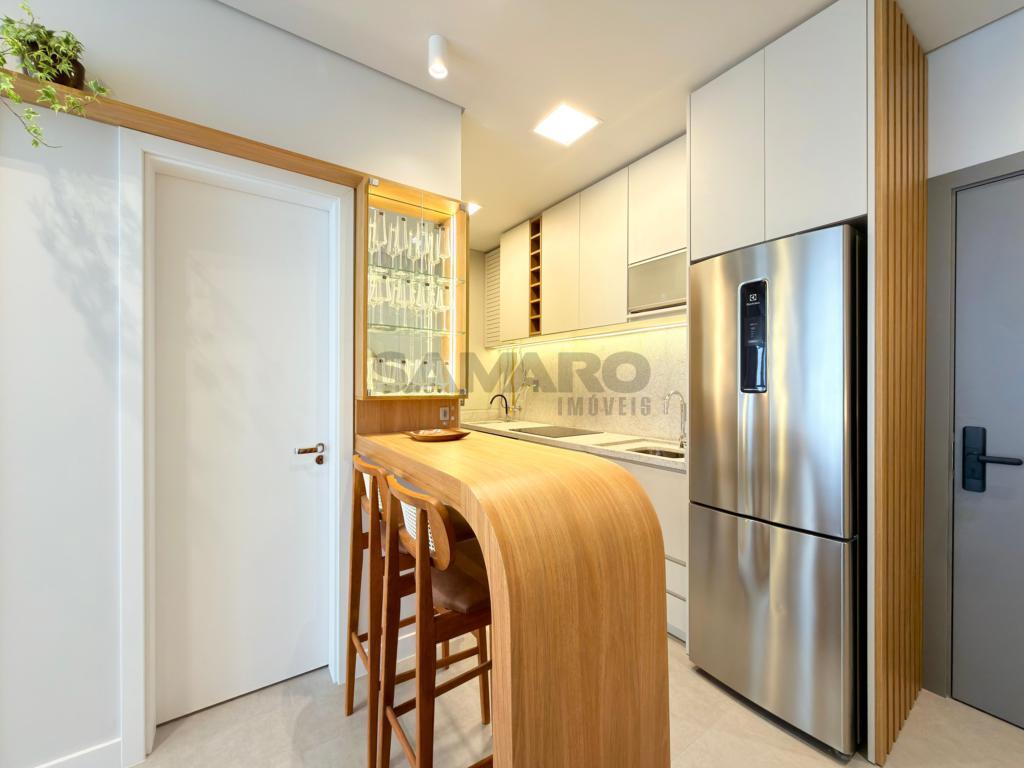 Apartamento de 1 quarto, demi-suíte, living em dois ambientes integrados, cozinha estilo americana, área de lavanderia, todos os ambientes climatizados, medidores de água e gás individuais, água quente e gás central, uma vaga de garagem, posição solar leste (sol da manhã), uma vaga de garagem.