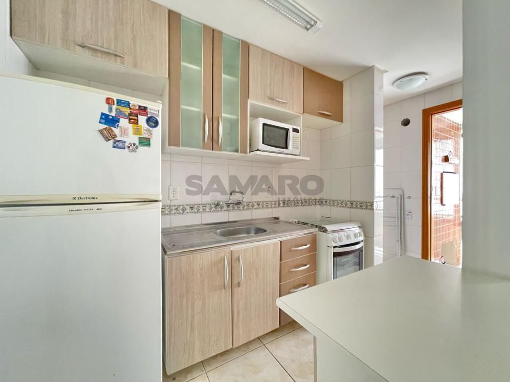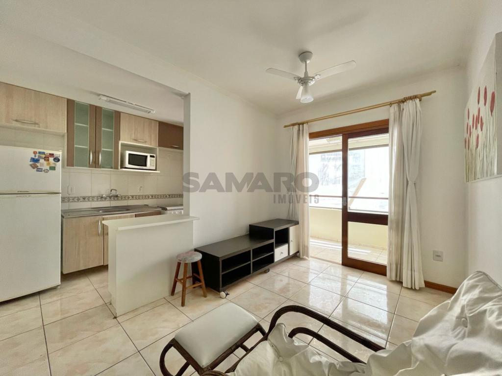 Apartamento de 1 quarto, living em dois ambientes, sacada lateral com churrasqueira,cozinha estilo americana, área de lavanderia, uma vaga de garagem, espera para água quente, gás central com medidor individual.