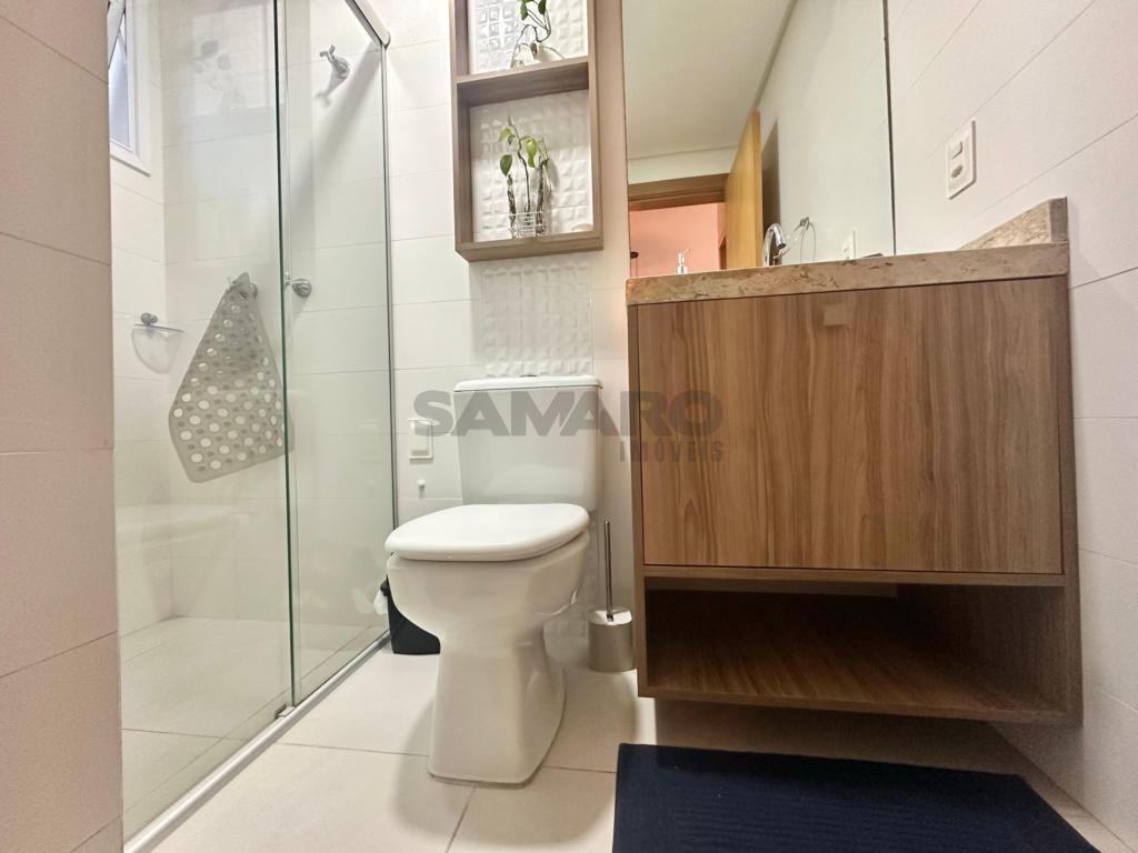 Apartamento de 01 dormitório, banheiro social, living estar, jantar, cozinha, churrasqueira, lavanderia, orientação solar todo leste e uma vaga de garagem.