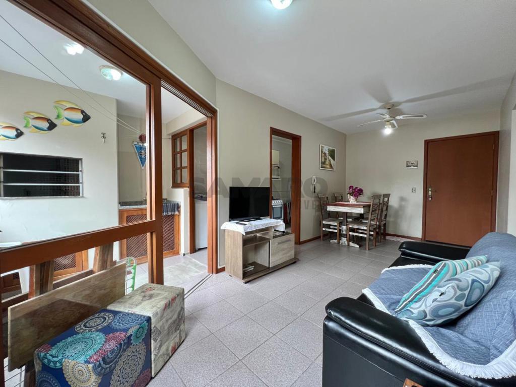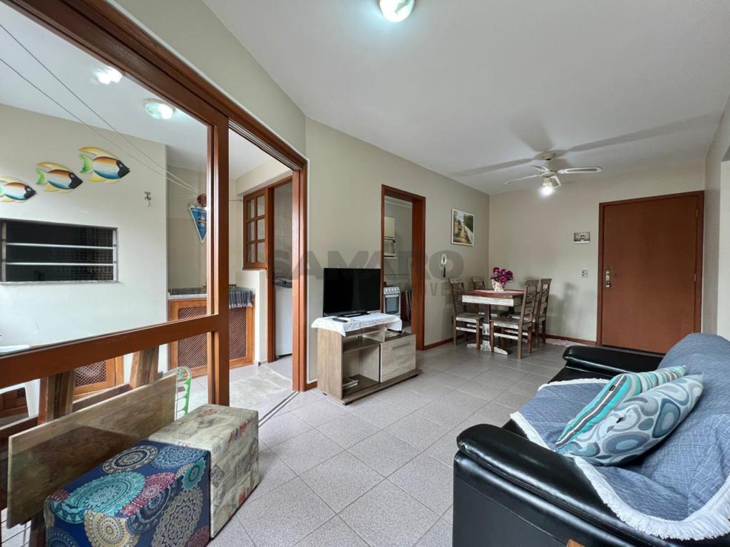 Apartamento de 01 quarto, living em dois ambientes, sacada lateral com churrasqueira, cozinha separada, área de lavanderia, banheiro social.