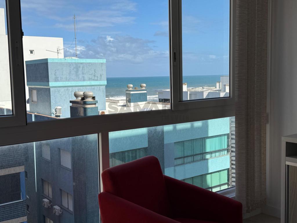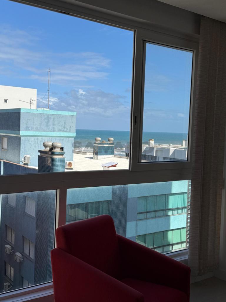 Apartamento andar alto, de frente, com vista mar, 01 dormitório, banheiro social, estar e jantar. Mobiliado, água quente, piso porcelanato.