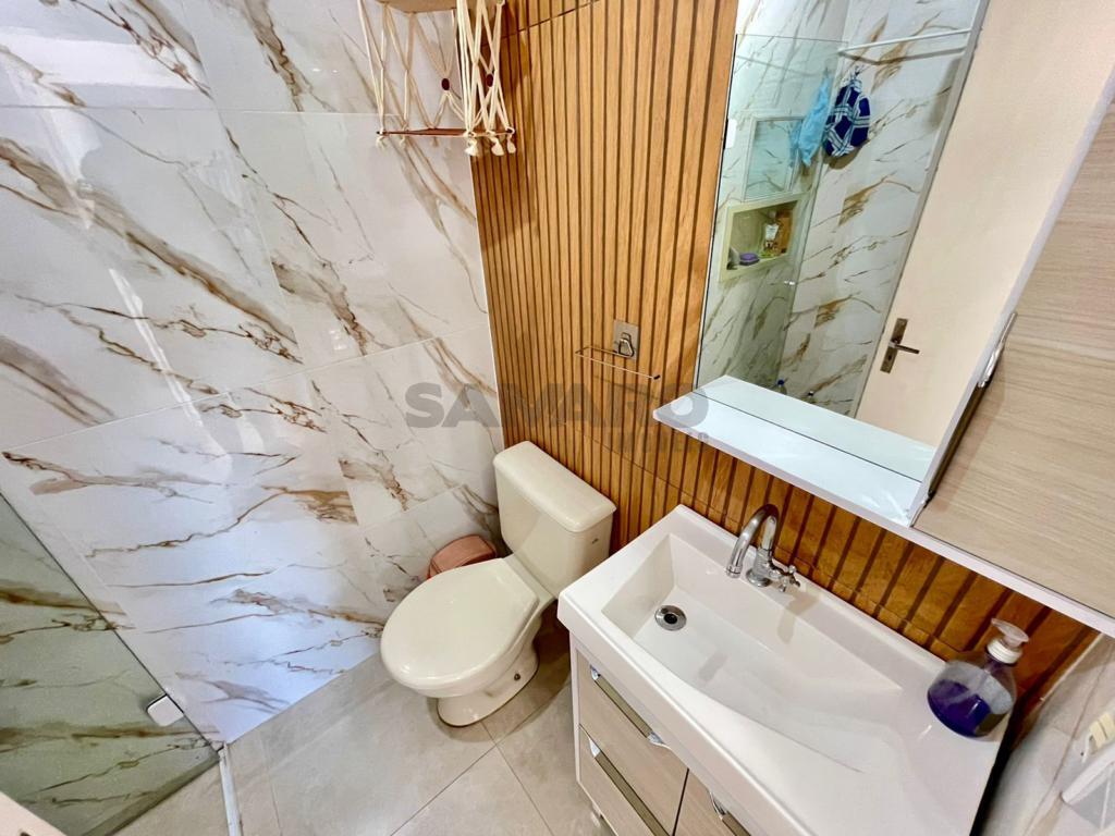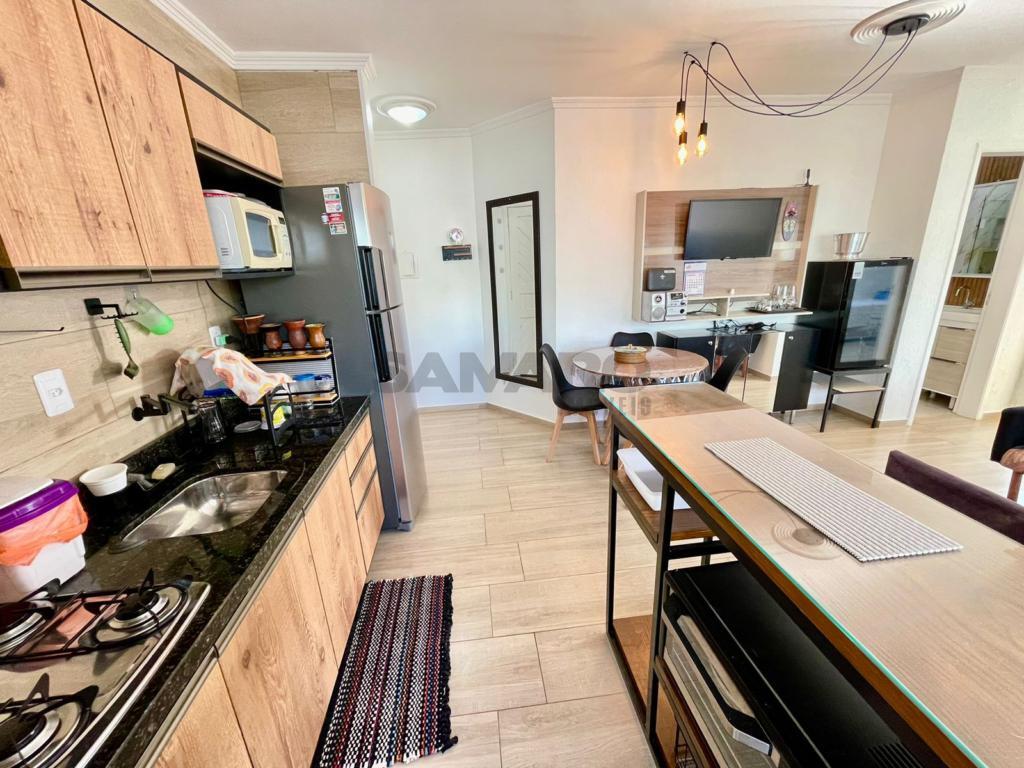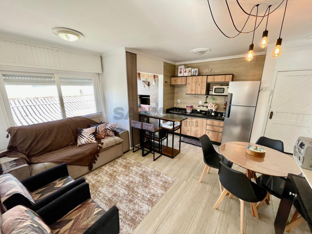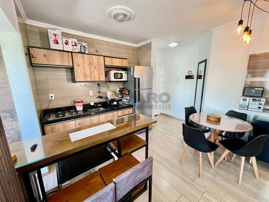 02 dormitorios, 01 suíte, banheiro social, living estar, jantar, cozinha estilo Americana com churrasqueira, lavanderia, mobiliado, uma vaga de garagem.