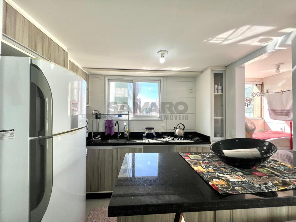 Apartamento com 02 dormitórios, 01banheiro social, living 2 ambientes, cozinha americana, mobiliado e decorado e churrasqueira.