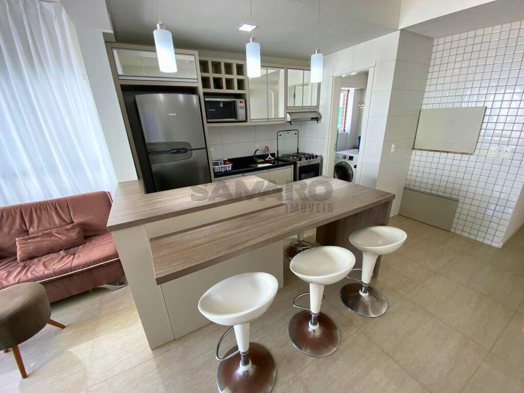 Dois (02) dormitorios, 01 suíte, banheiro social, living estar, jantar, cozinha estilo Americana com churrasqueira, lavanderia separada, mobiliado, uma vaga de garagem.