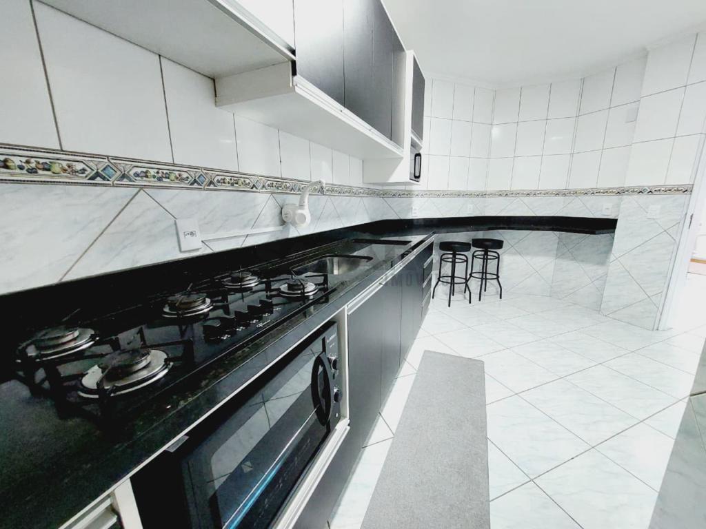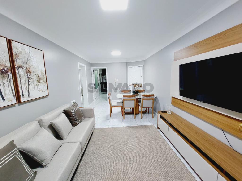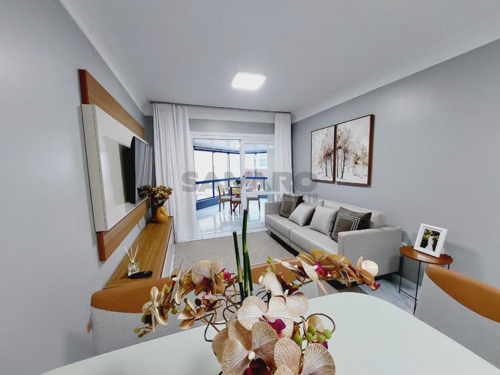 Apartamento de frente mobiliado e decorado 02 dormitórios sendo uma suíte, cozinha separada, área de serviço separada, banheiro social , sacada com churrasqueira, box de garagem.