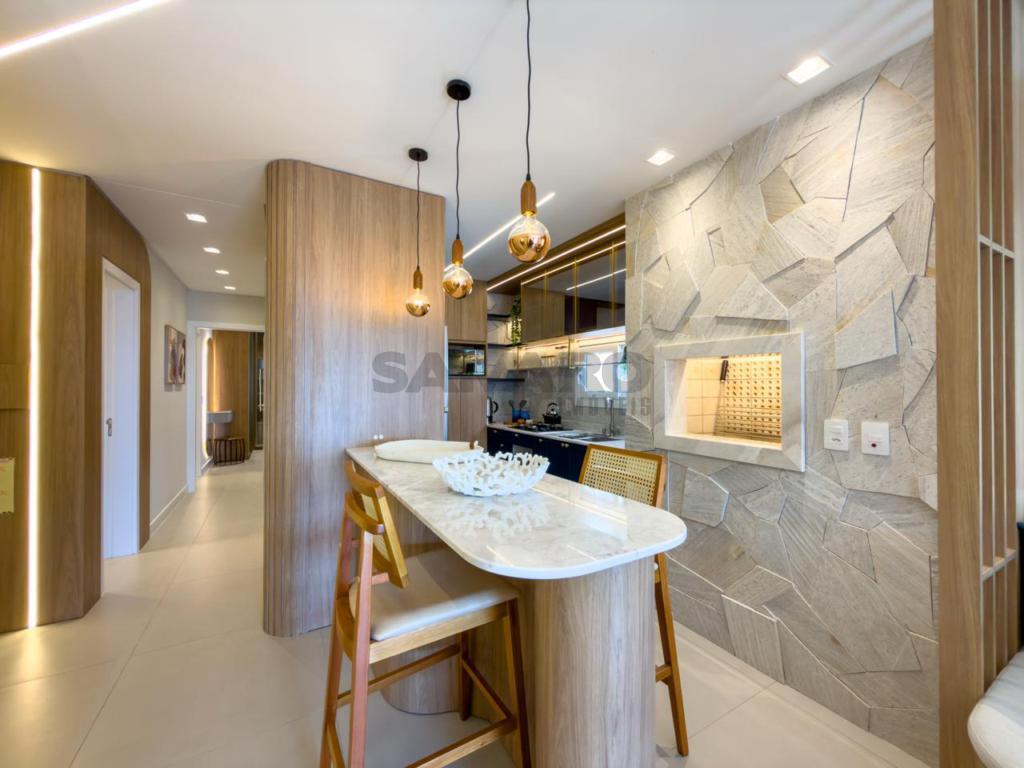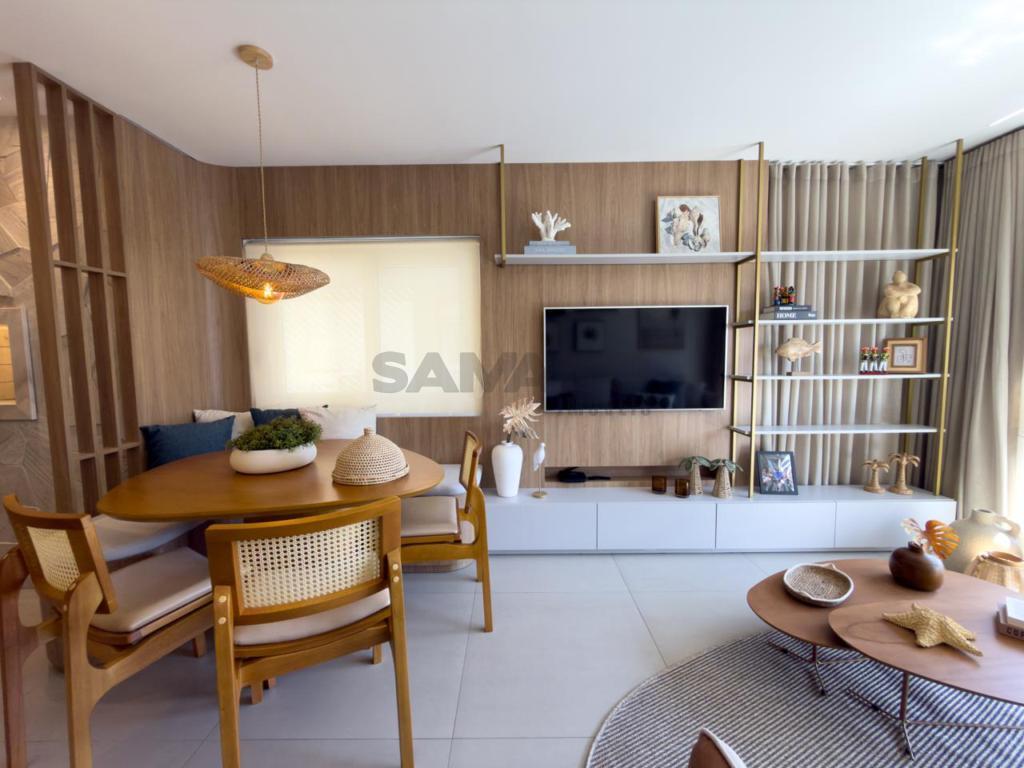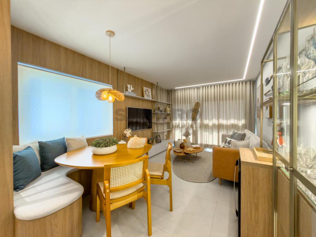 2 dormitórios de frente mobiliado e decorado com garagem de fácil acesso, sala de estar e jantar, cozinha americana, lavanderia, suíte, banheiro social, muito bem mobiliado.