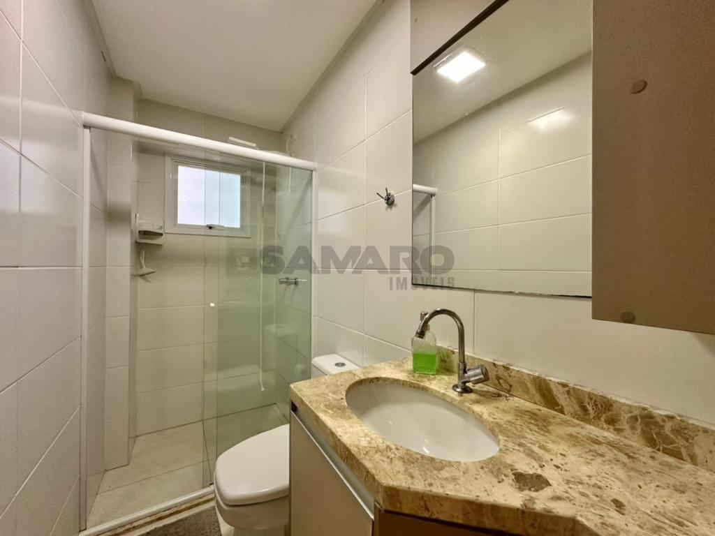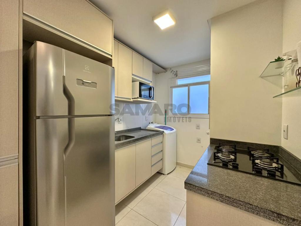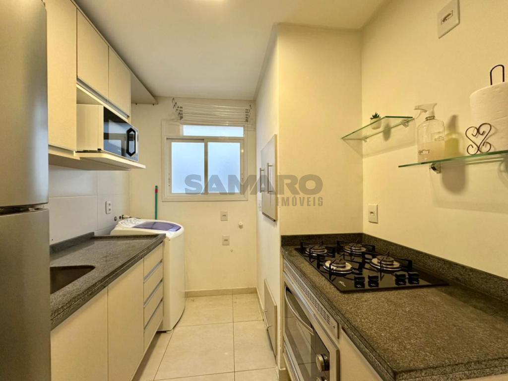 Apartamento de 01 quarto, living em dois ambientes, cozinha, área de lavanderia, banheiro social e uma vaga de garagem.