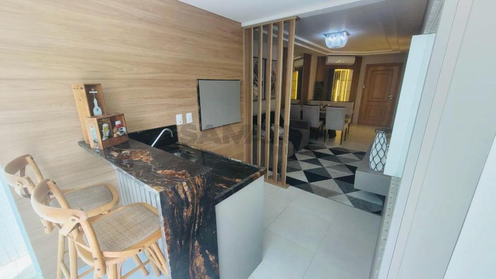 É o seu apartamento! Excelente localização e a duas quadras do mar, junto ao centro, próximo a praça Luis Bassani, terraço de frente com churrasqueira e espaço gourmet preparado para recepcionar os amigos com conforto e requinte, o apartamento tem 02 dormitórios, sendo um suíte, banho social, mobiliado, cozinha e lavanderia separadas.