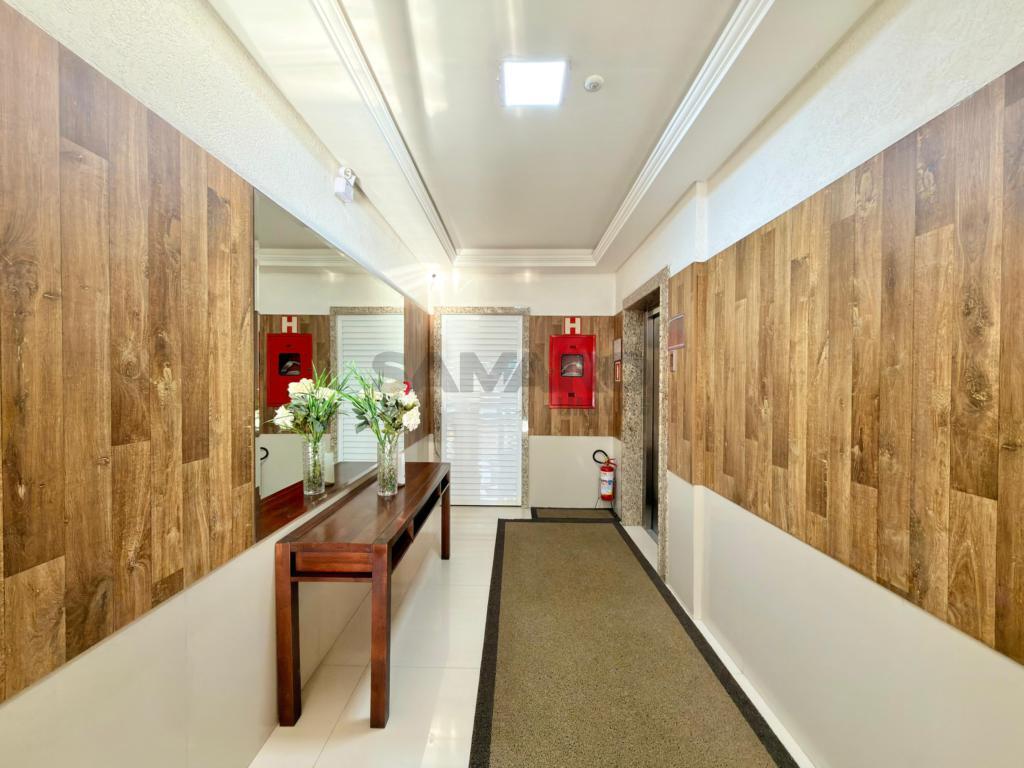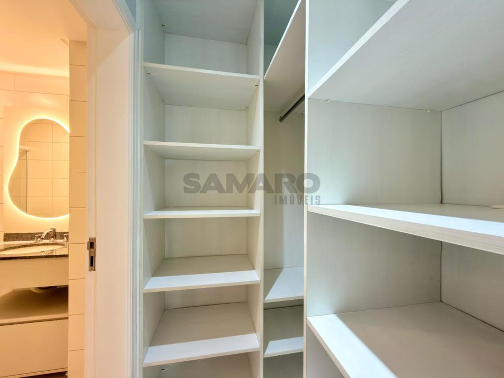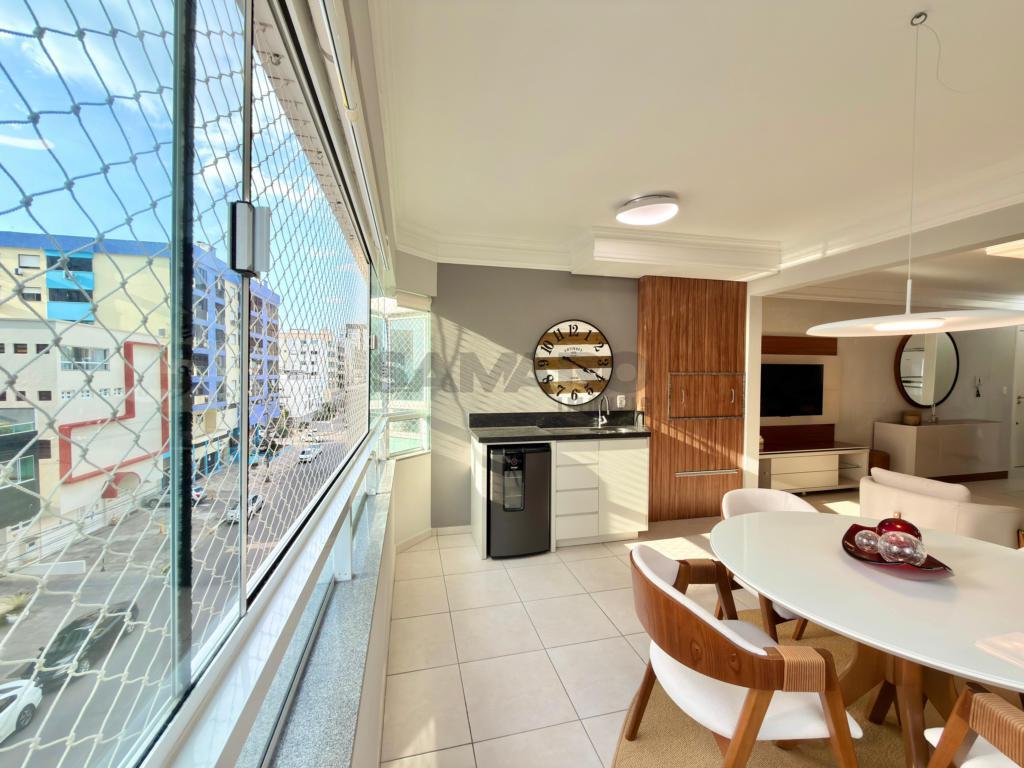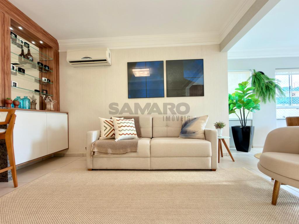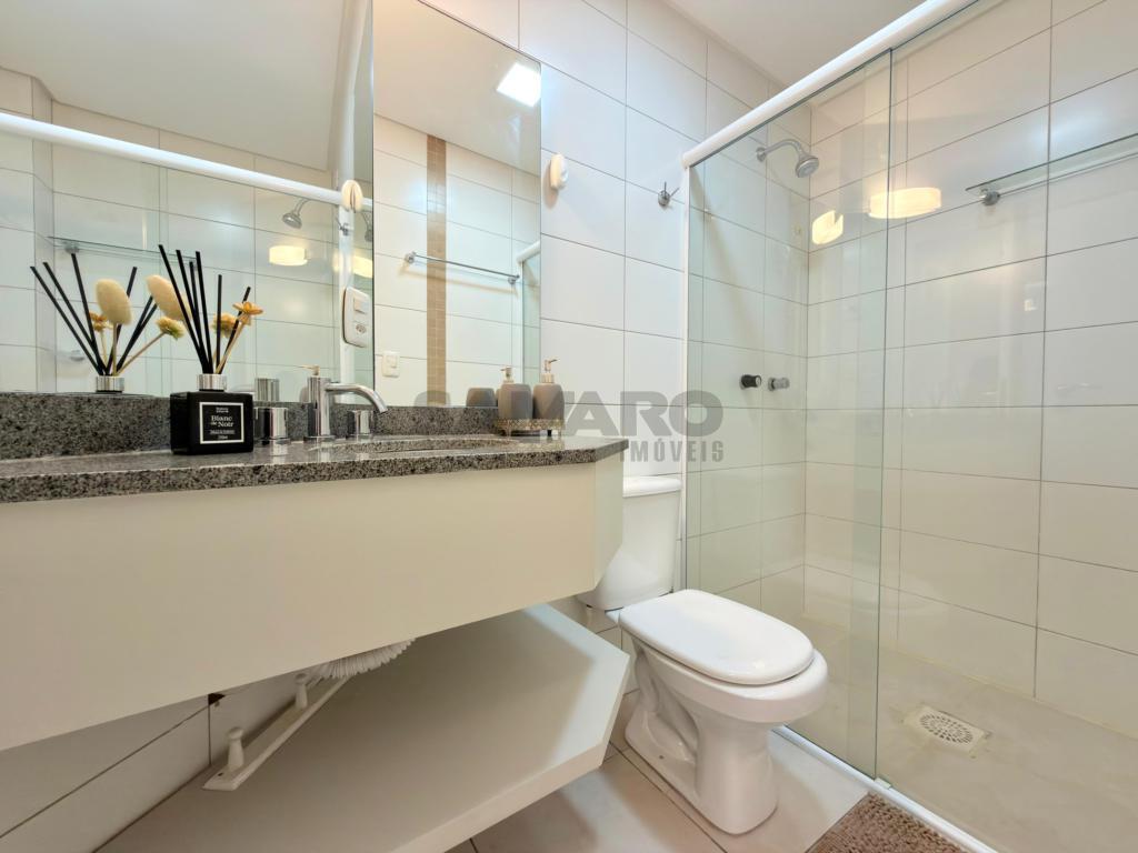 Apartamento de frente com sacada de frente com churrasqueira, integrada ao living em dois ambientes, dois quartos (sendo um suíte), banheiro social, cozinha estilo americana, área de lavanderia separada, uma vaga de garagem, todos os ambientes climatizados, espera para água, gás central, posição solar oeste/sul, 81,16 metros de área privativa e 112,41 metros de área total, mobiliado e decorado.