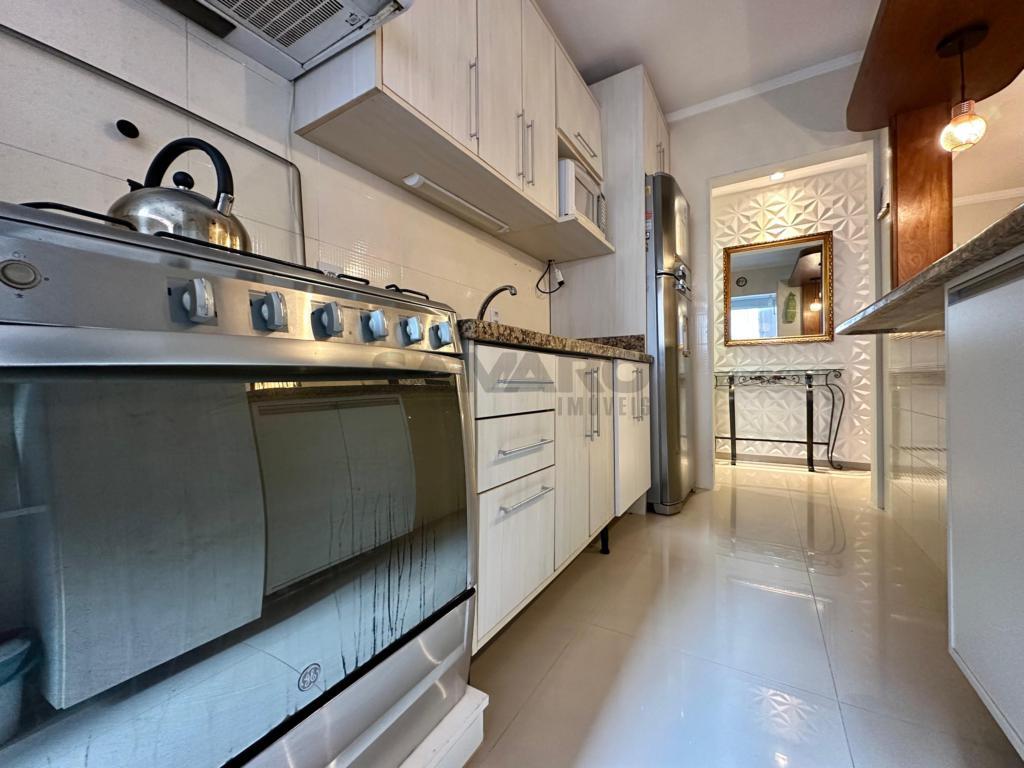 Apartamento de 02 dormitórios, sendo um suíte, banheiro social, living estar, jantar, com churrasqueira, cozinha estilo americana, mobiliado e com uma vaga de garagem.