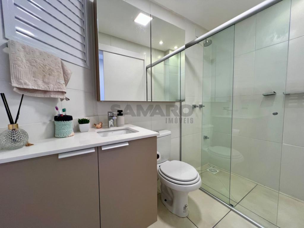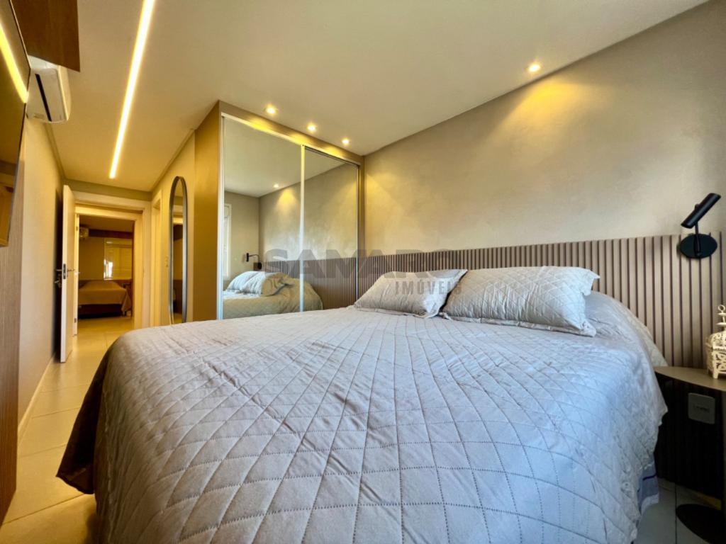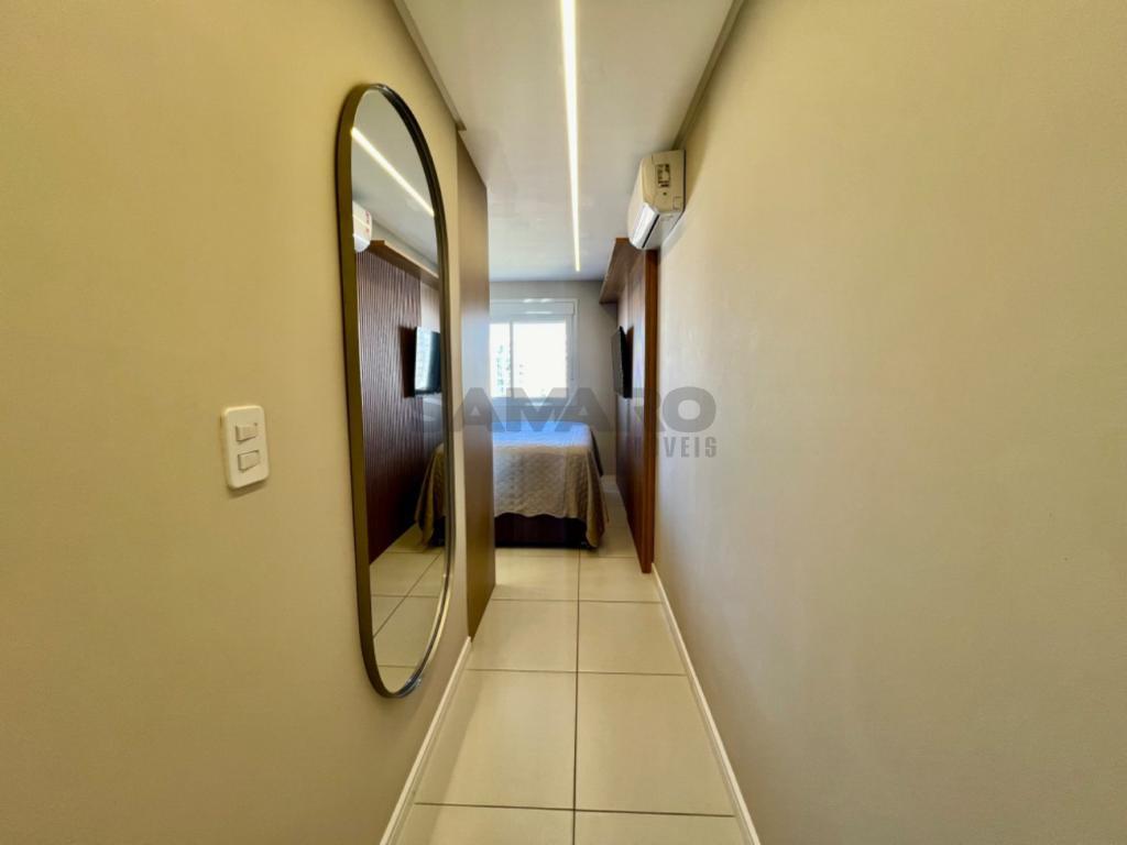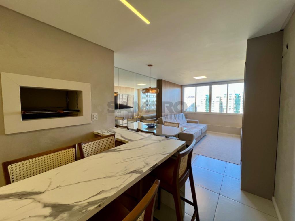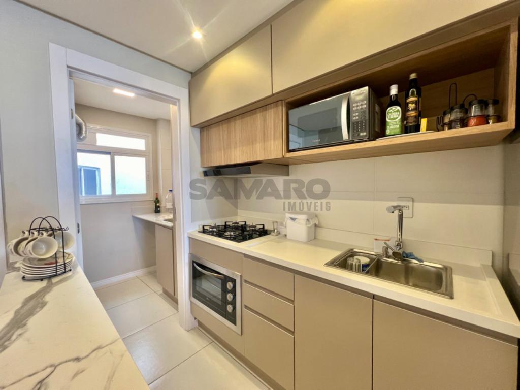 02 dormitorios, 01 suíte, banheiro social, living estar, jantar, cozinha estilo Americana com churrasqueira, lavanderia separada, mobiliado, uma vaga de garagem.