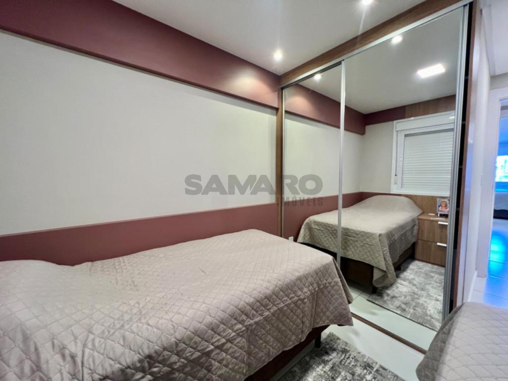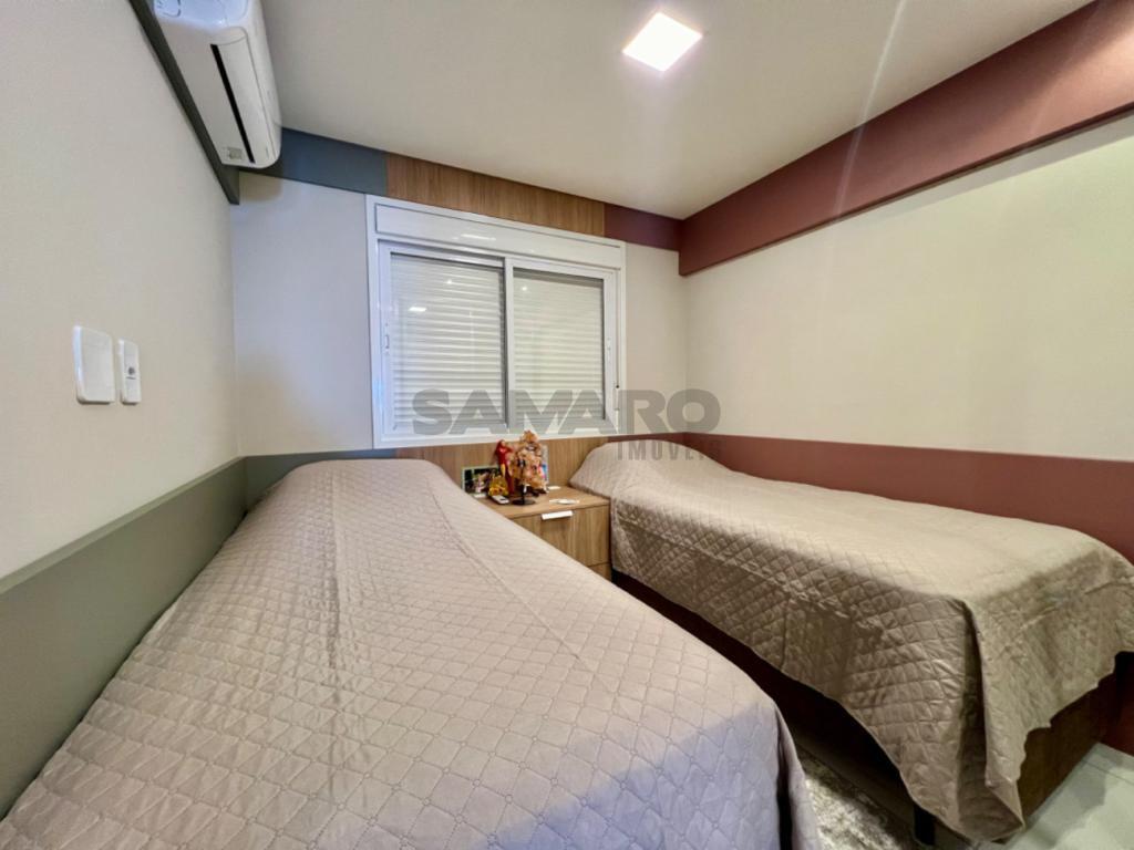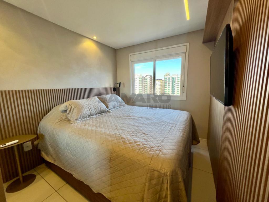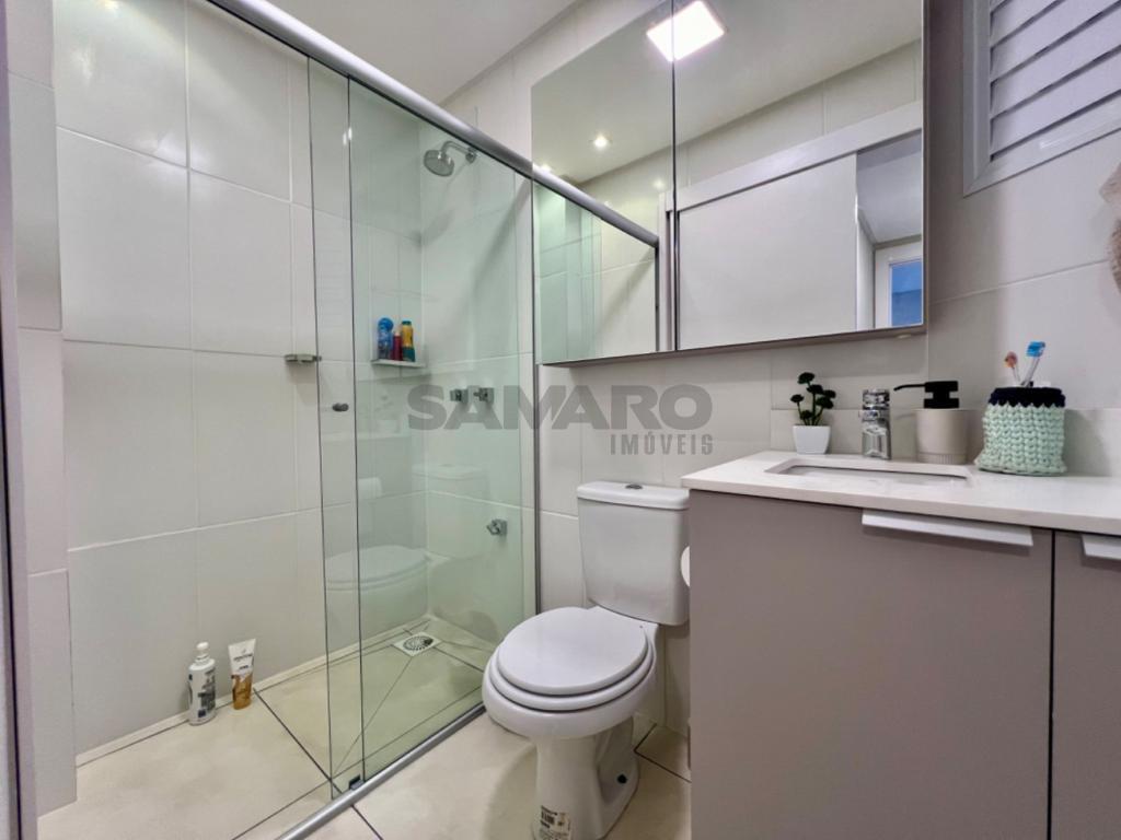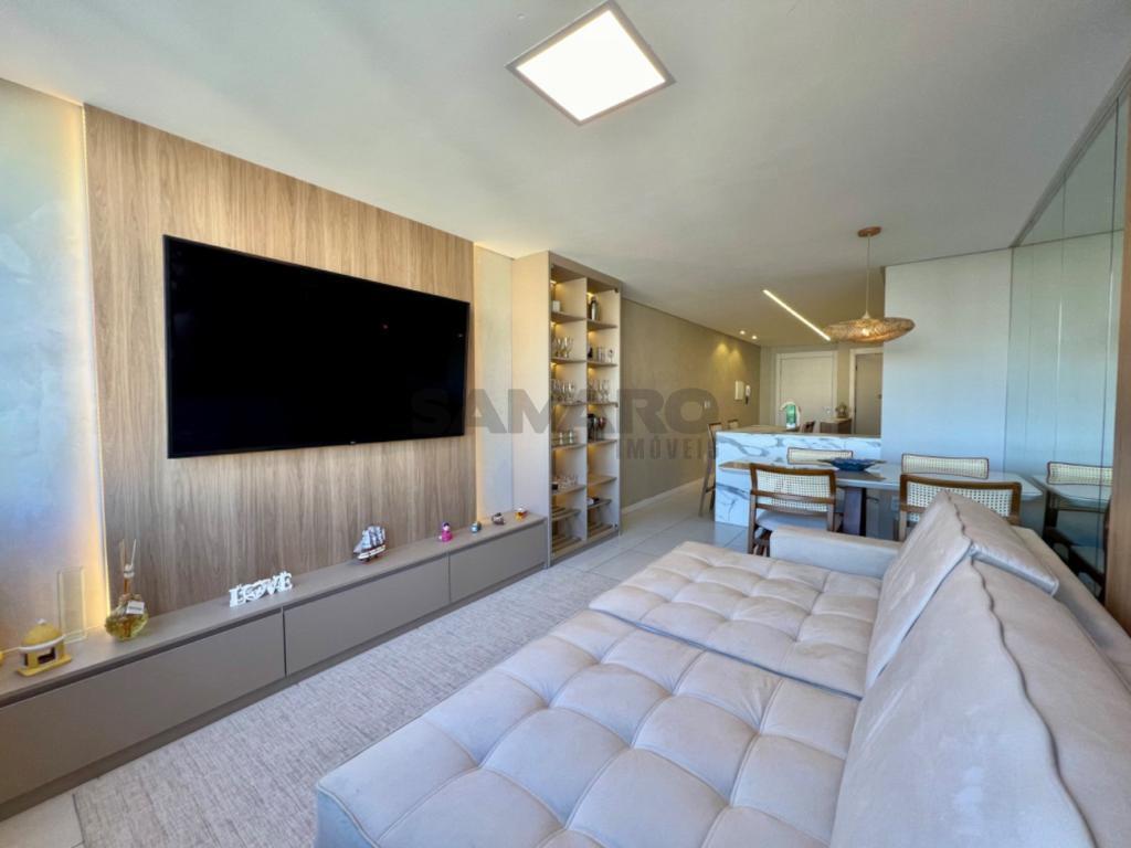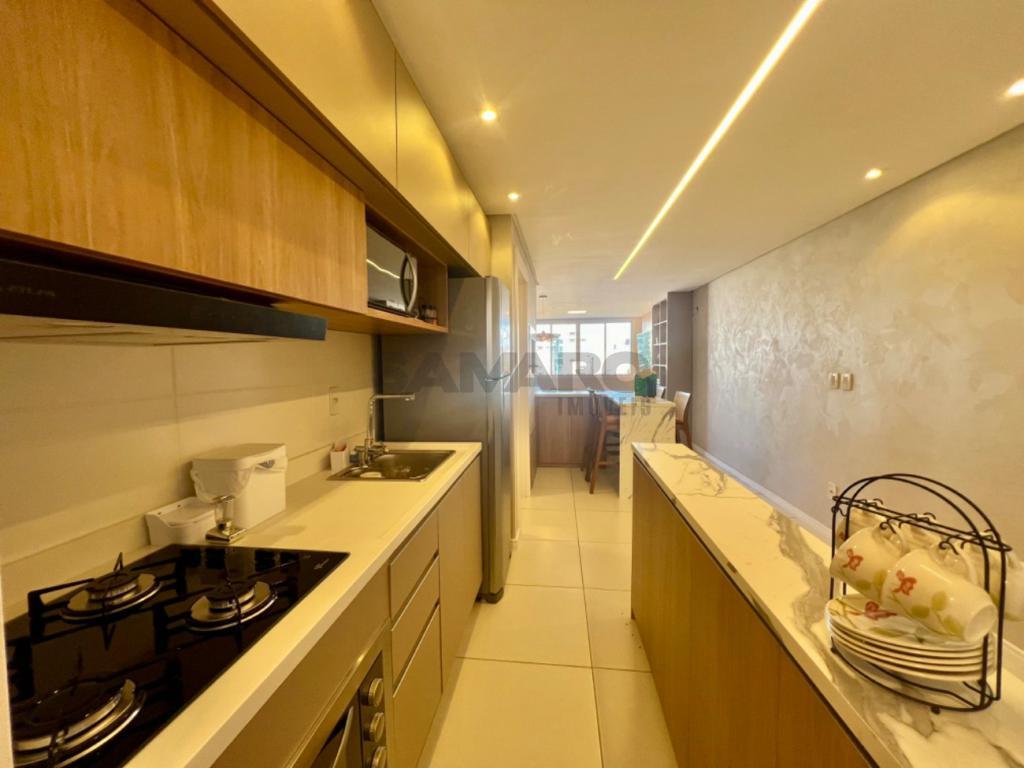 02 dormitorios, 01 suíte, banheiro social, living estar, jantar, cozinha estilo Americana com churrasqueira, lavanderia separada, mobiliado, uma vaga de garagem.