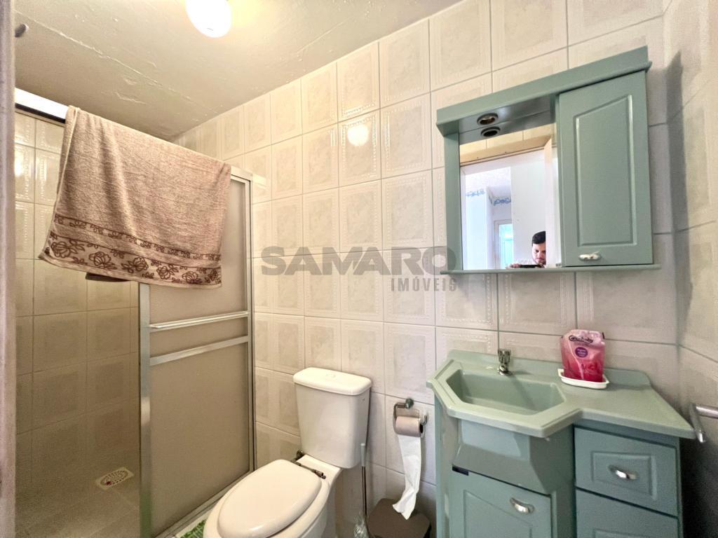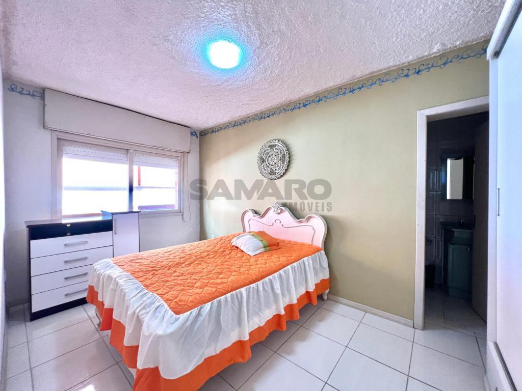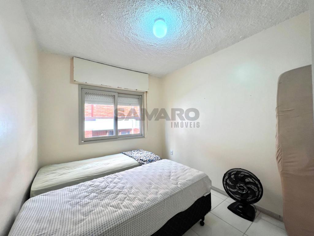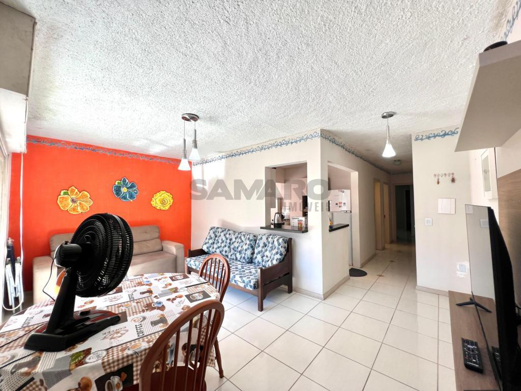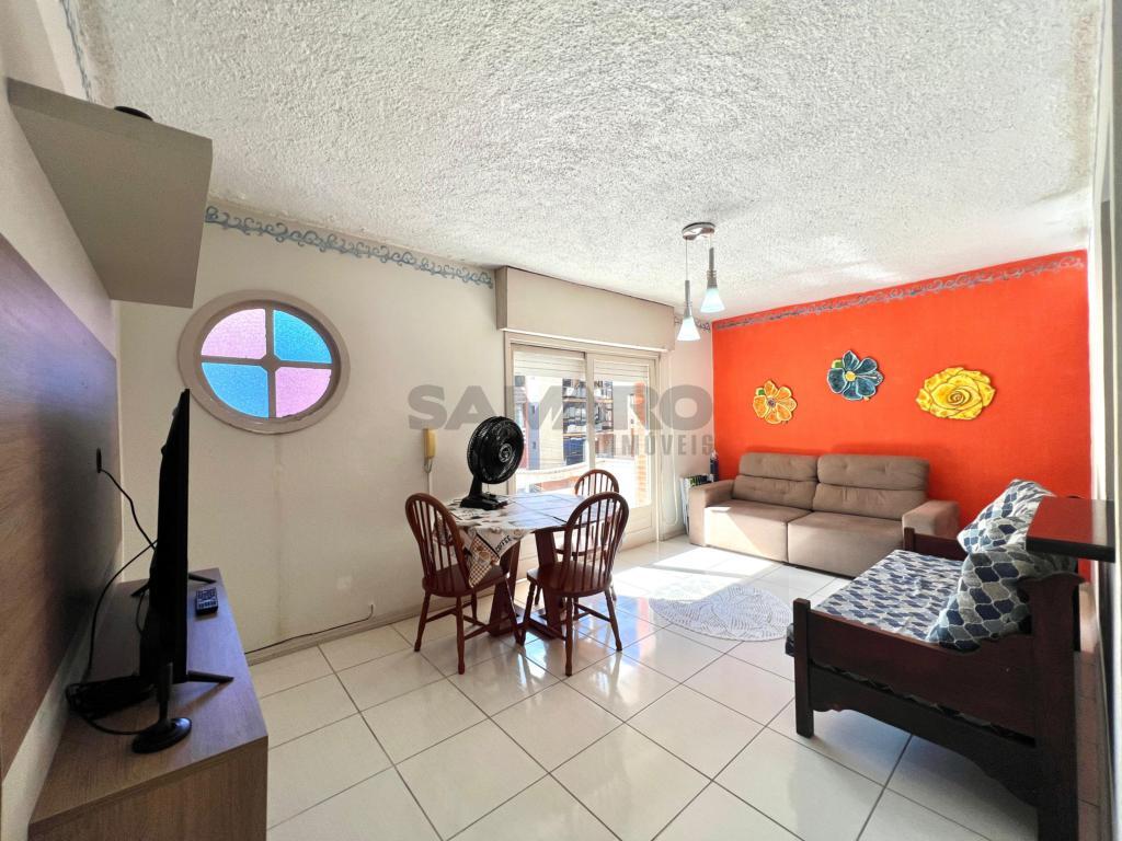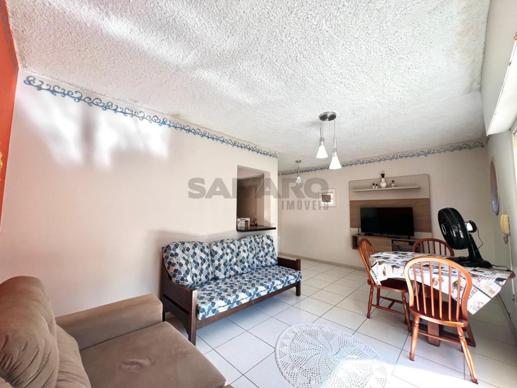 Apartamento de frente com sacada separada, 02 dormitórios sendo uma suíte, living em dois ambientes, banheiro social, lavanderia separada, cozinha, com duas vagas de garagem.