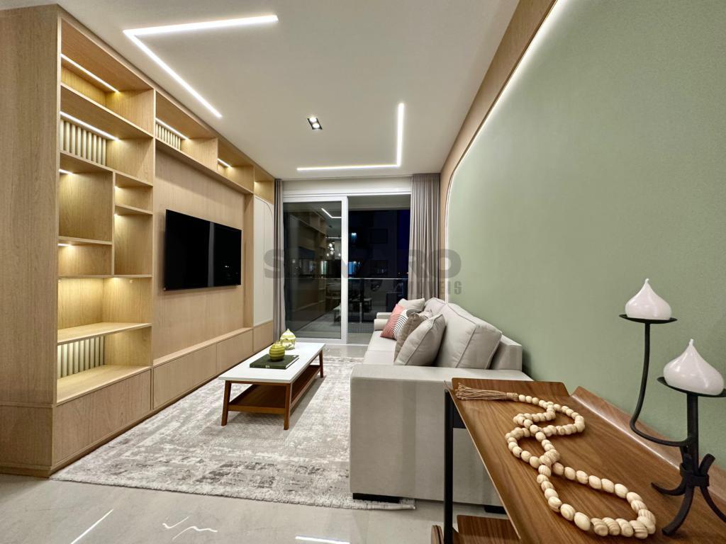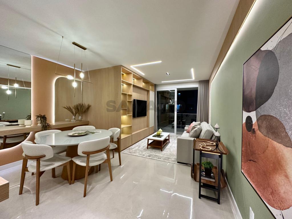 Apartamento frente Oeste, 2 dormitórios (1 suite), 1 banho social, varanda ampla na sala, varanda no quarto, vista para área social do prédio, área de serviço espaçosa, cozinha planejada, churrasqueira, finamente mobiliado e decorado, split em todos os ambientes. Edificio com salão de festas decorado (brinquedoteca), piscina com cascata (térreo), academia e muito mais.