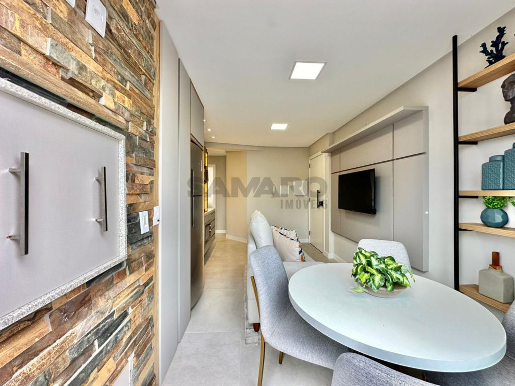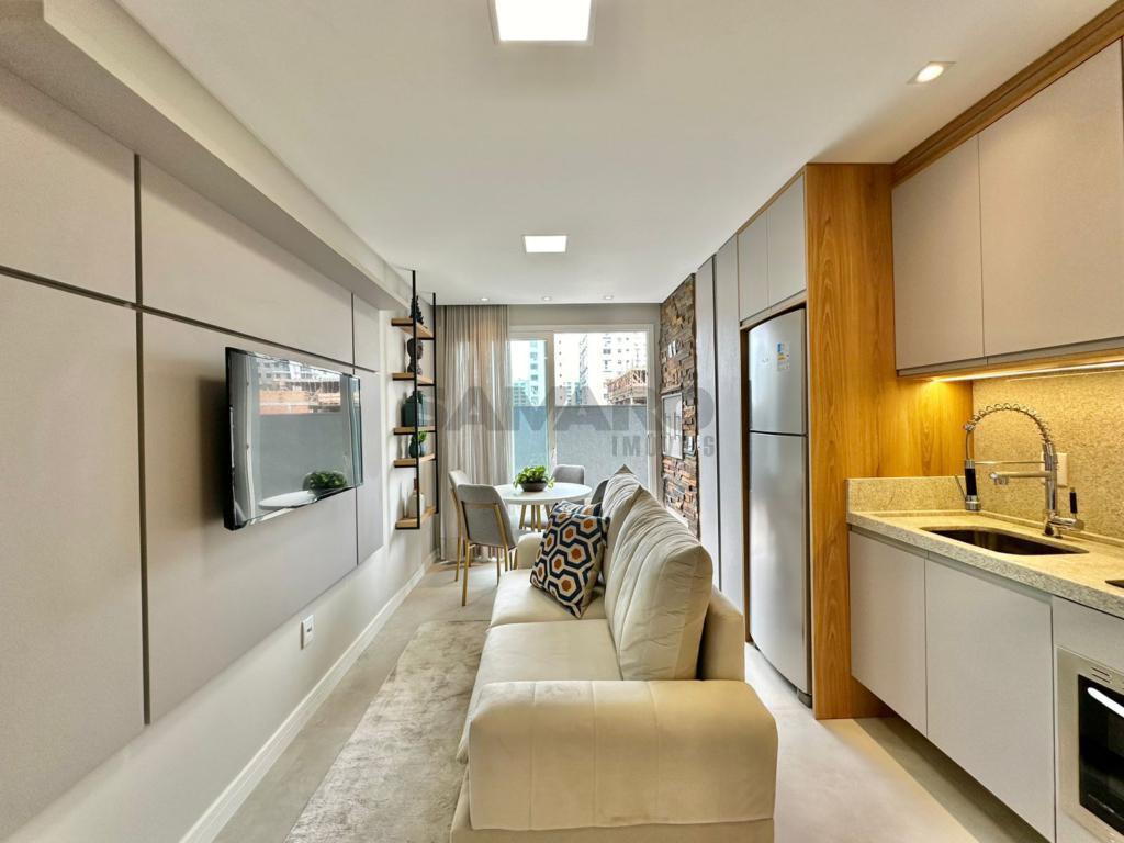 Apartamento com 01 suítes,banho social, mobiliado e decorado, cozinha americana,living sala estar e jantar, frente lateral e sul fundos e Oeste, 2 terraços, fechadura eletronica, box.