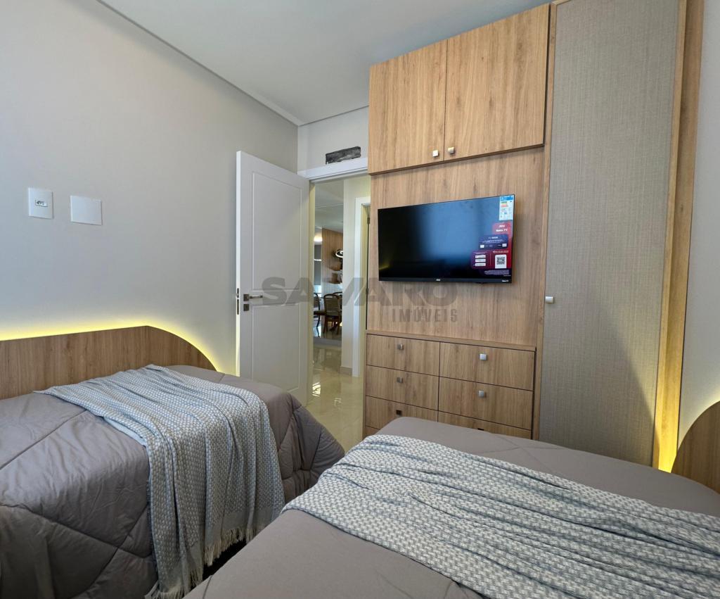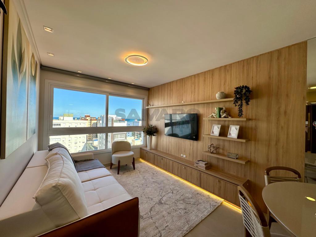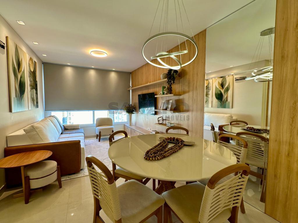 Apartamento mobiliado e decorado, composto por 2 quartos sendo um suíte, living em dois ambientes, cozinha estilo americna, área de lavanderia, duas vagas de garagens, espera para água quente e ar condicionado split, medidores de água e gás individuais.