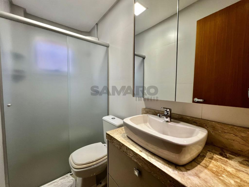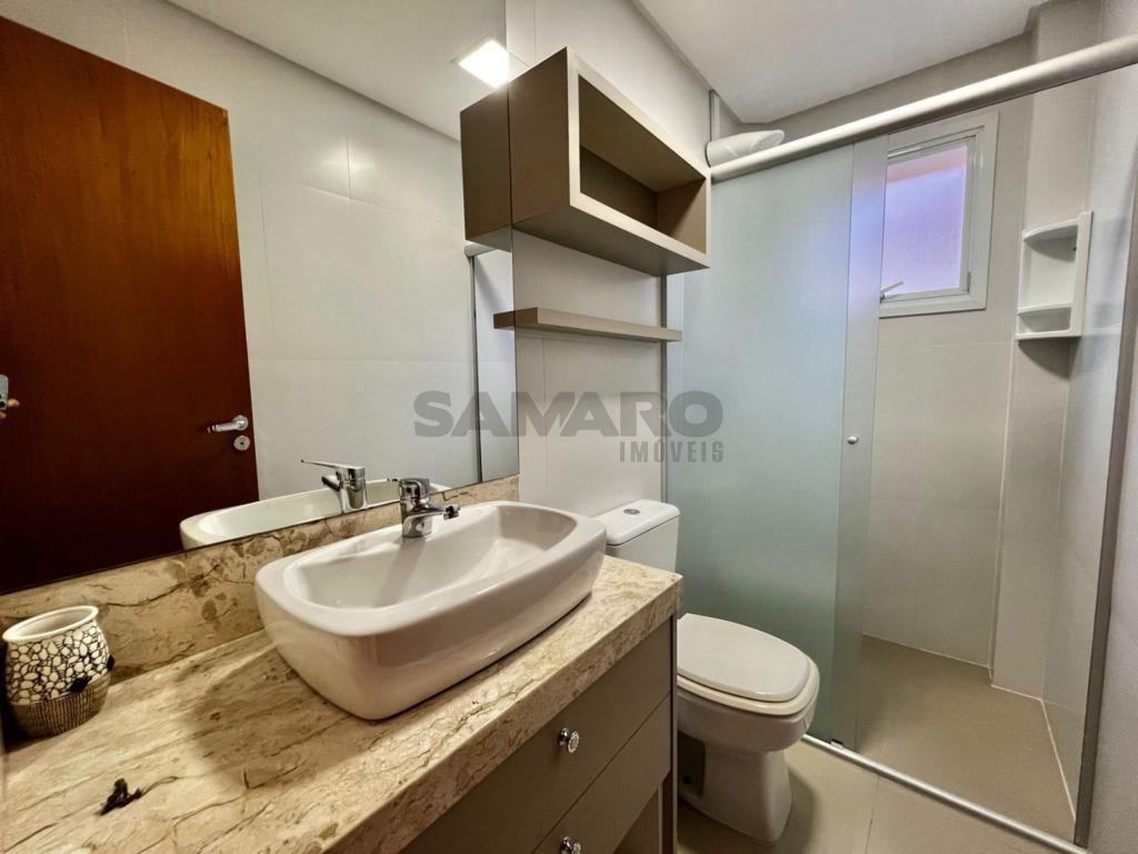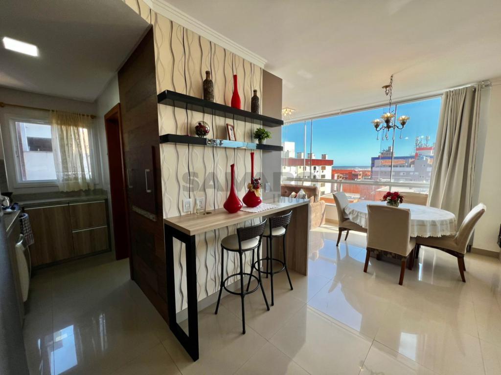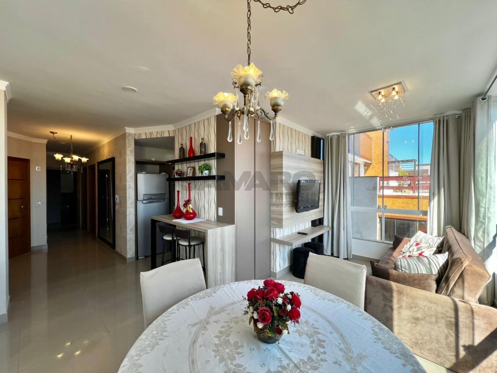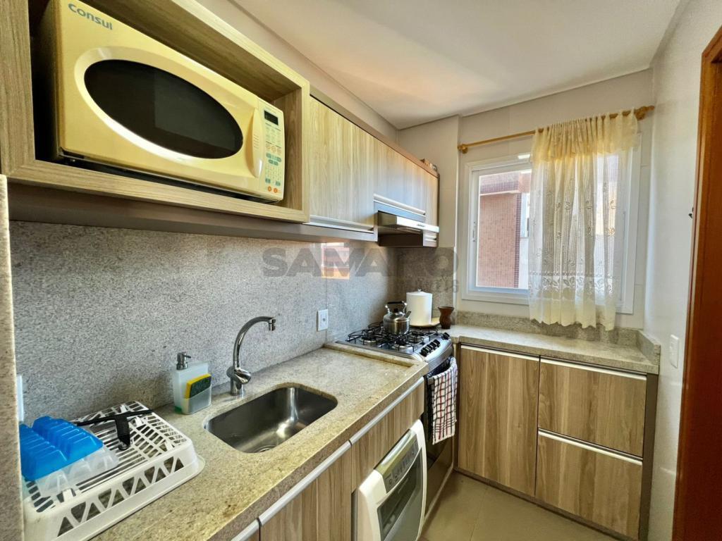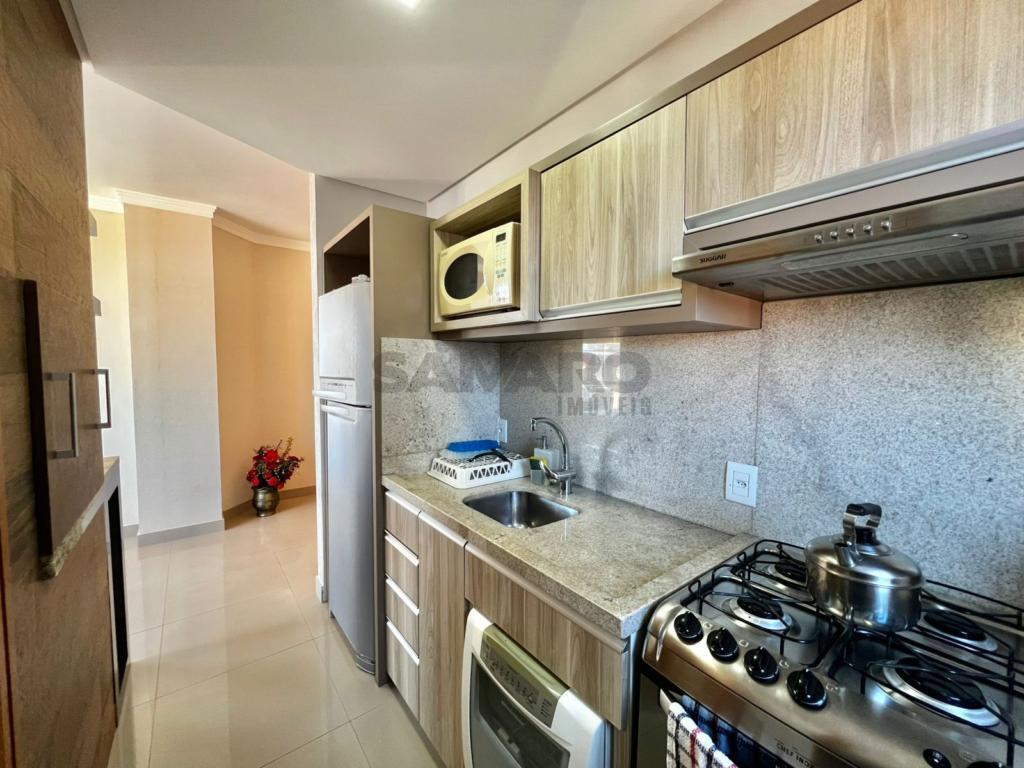02 dormitorios, 01 suíte, banheiro social, living estar, jantar, cozinha estilo Americana com churrasqueira, lavanderia separada, mobiliado, uma vaga de garagem.