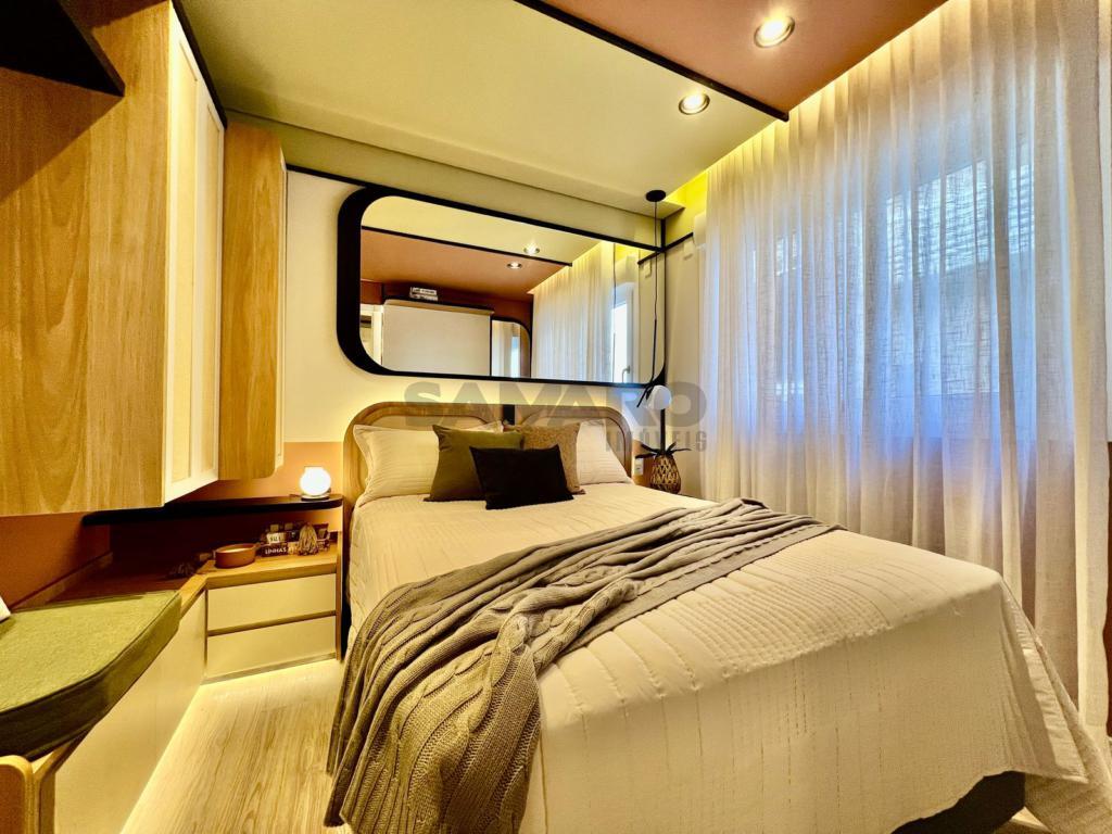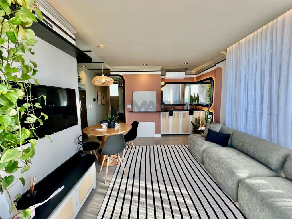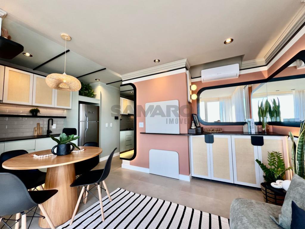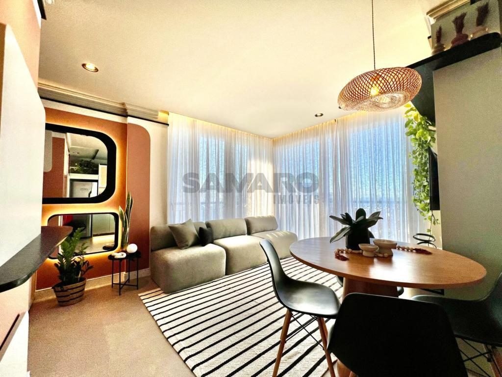 Apartamento 02 suítes, lavabo, living estar, jantar, churrasqueira, cozinha estilo americana, sacada de frente, mobiliado, decorado, orientação solar leste, norte, uma vaga de garagem.