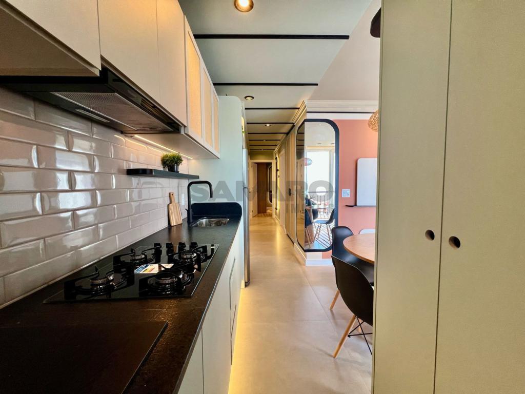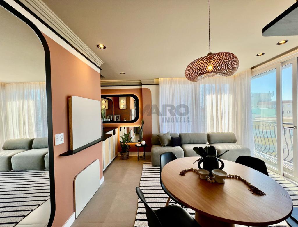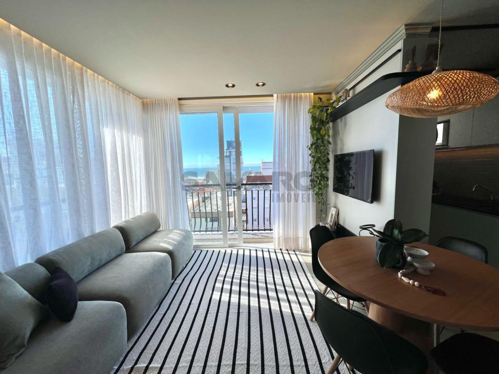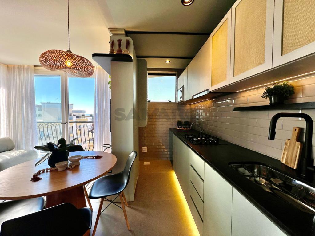 Apartamento 02 suítes, lavabo, living estar, jantar, churrasqueira, cozinha estilo americana, sacada de frente, mobiliado, decorado, orientação solar leste, norte, uma vaga de garagem.