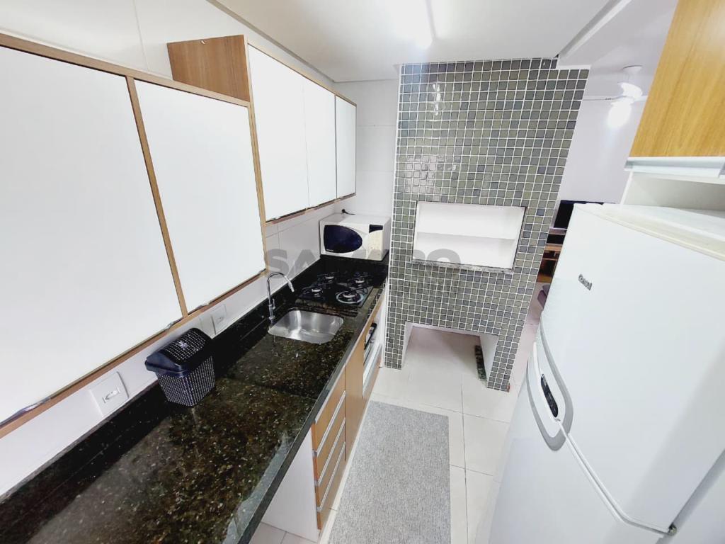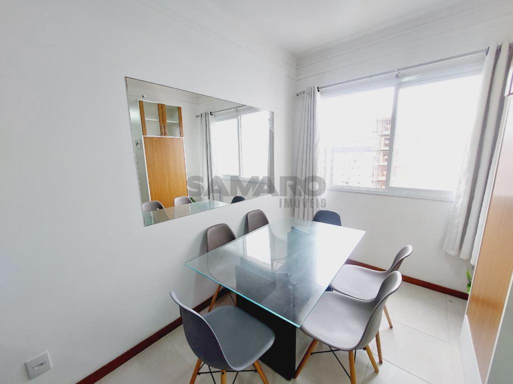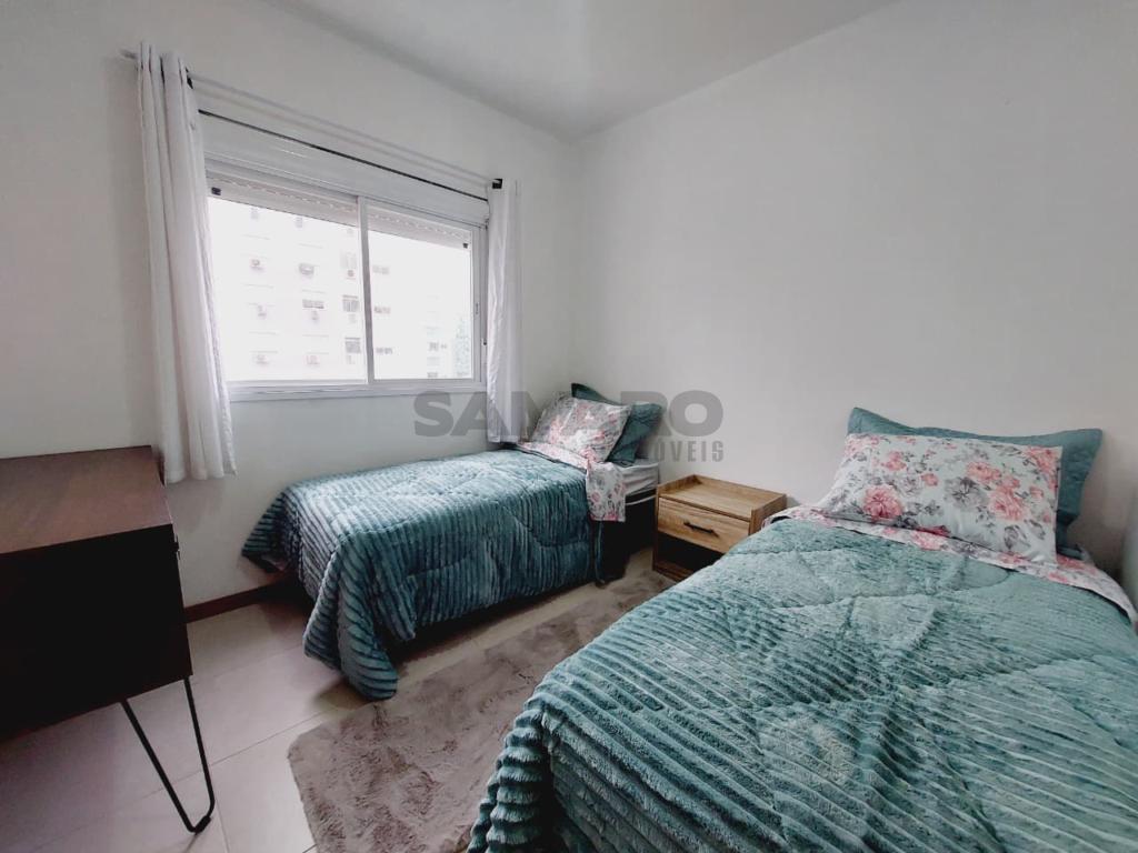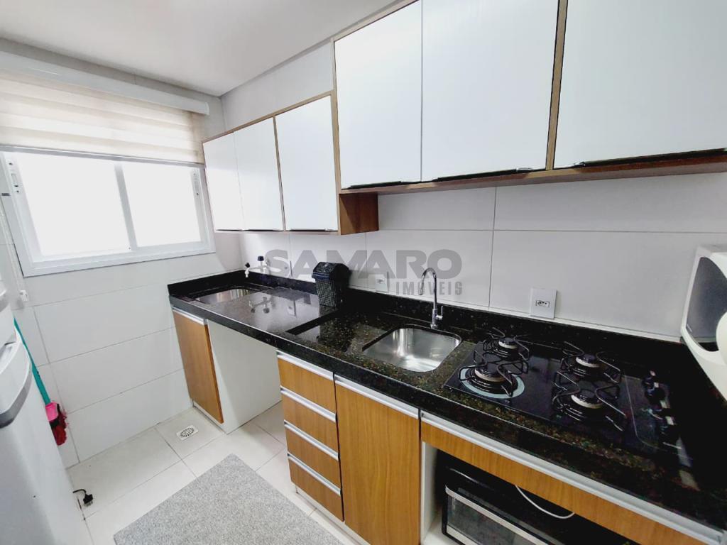Apartamento de dois dormitórios, sendo um suíte, banheiro social, living estar, jantar, cozinha, churrasqueira, orientação solar leste, sul e uma vaga de garagem.