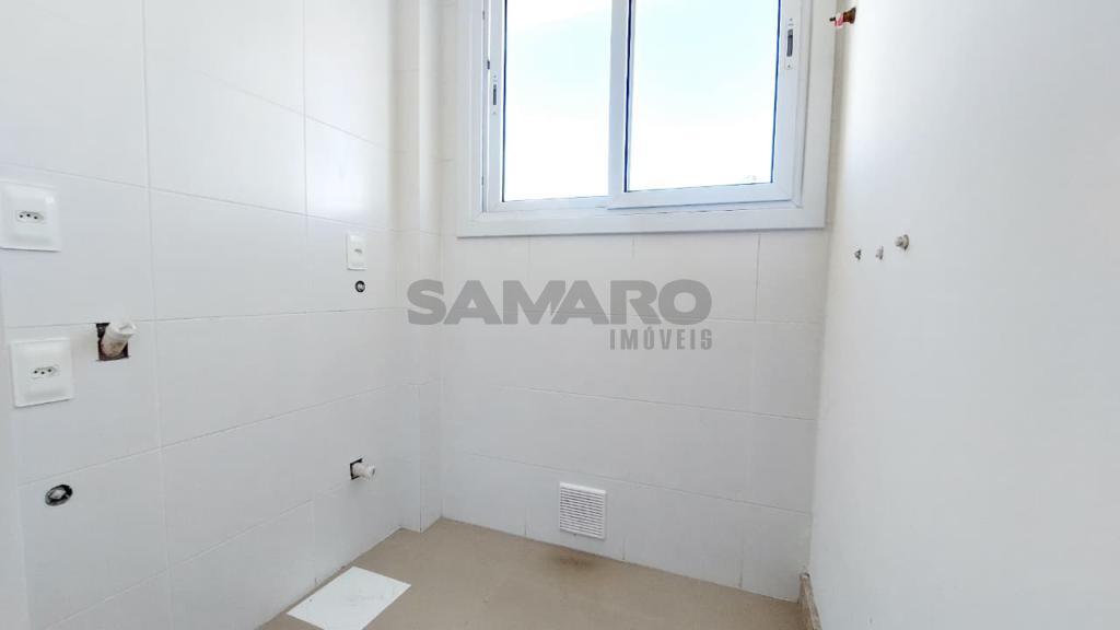 Apartamento novo, de frente, nunca habitado de dois quartos (sendo um suíte), banheiro social, living em dois ambientes integrados, cozinha estilo americana, churrasqueira, área de lavanderia separada, uma vaga de garagem, espera para ar condicionado split e água quente, posição solar oeste, medidores de água e gás individuais.
