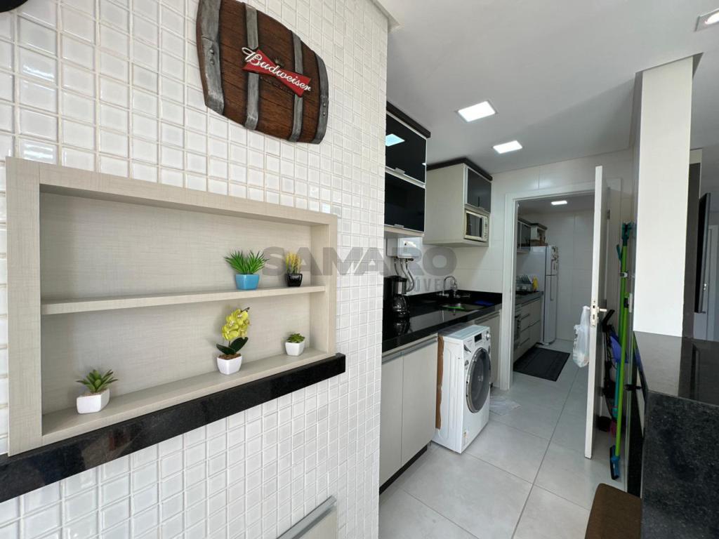 Dois dormitórios sendo um suíte, banho social, sacada de frente, mobiliado e decorado com bom gosto e requínte, pensado para o seu conforto e qualidade de vida, churrasqueira extratégica para o churrasco da família, vista mar para o descanso no final da tarde e ainda duas vagas de garagem uma ao lado da outra com fácil acesso.