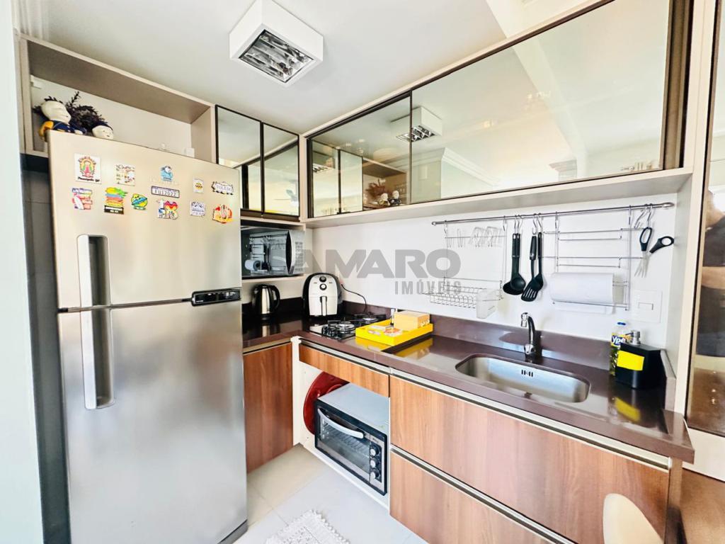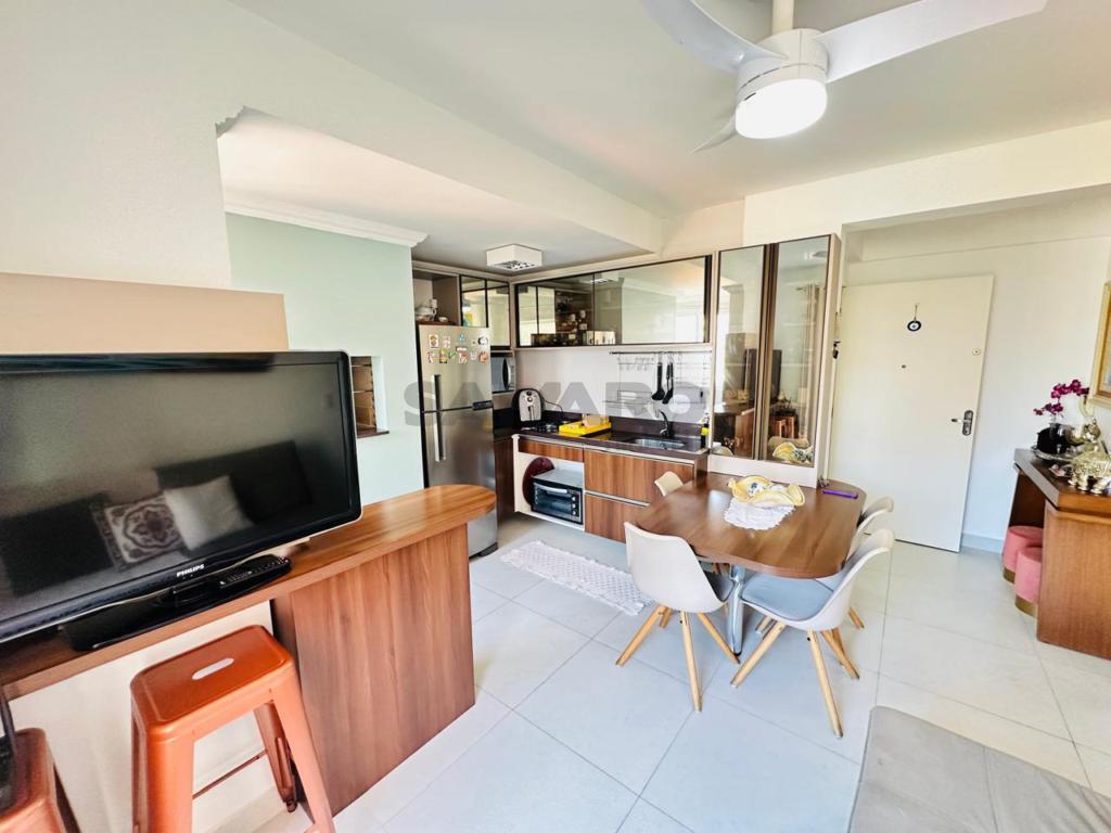 Apartamento de 02 dormitorios, 01 suíte, banheiro social, living estar, jantar, cozinha estilo Americana com lavanderia integrada, churrasqueira, mobiliado, uma vaga de garagem e um depósito.