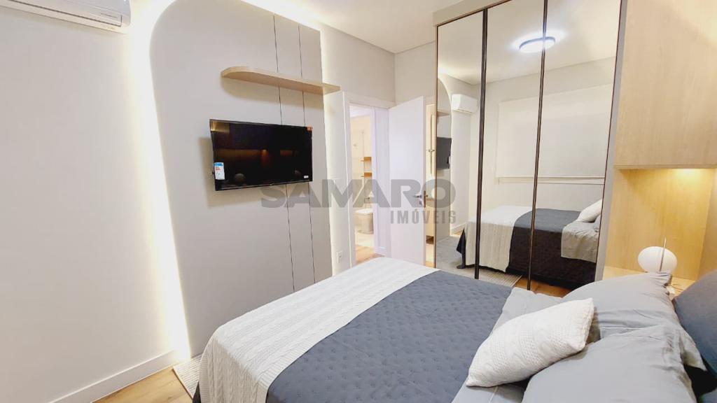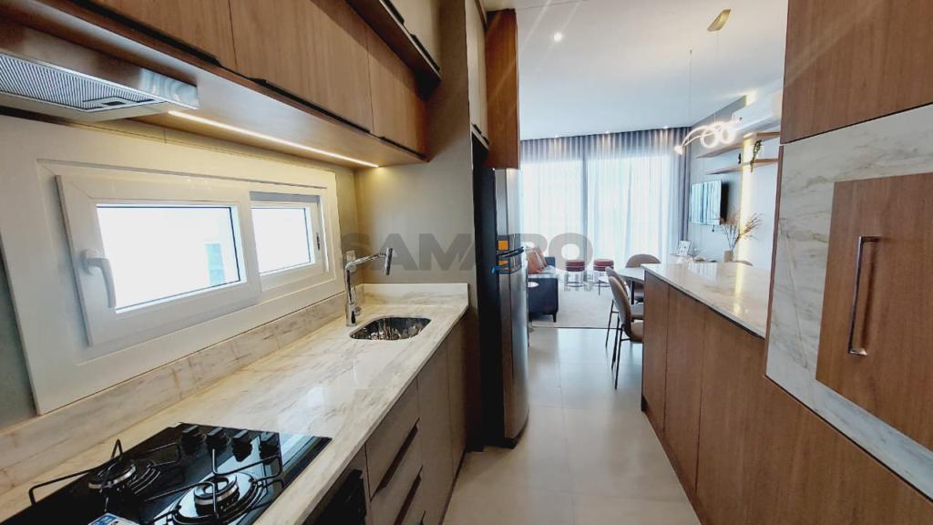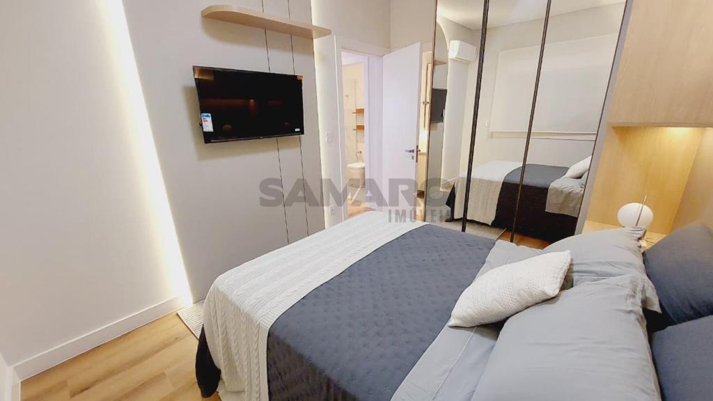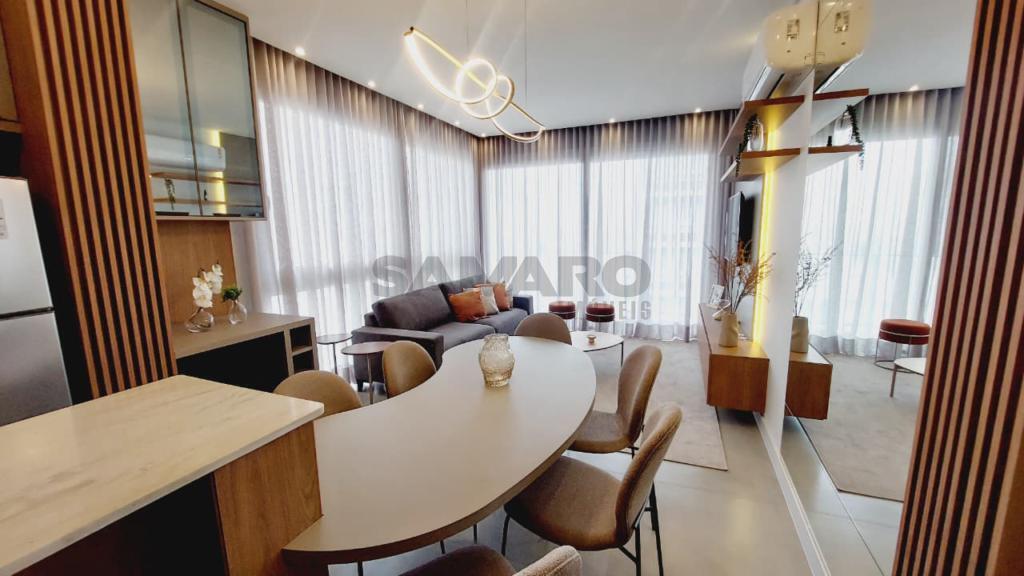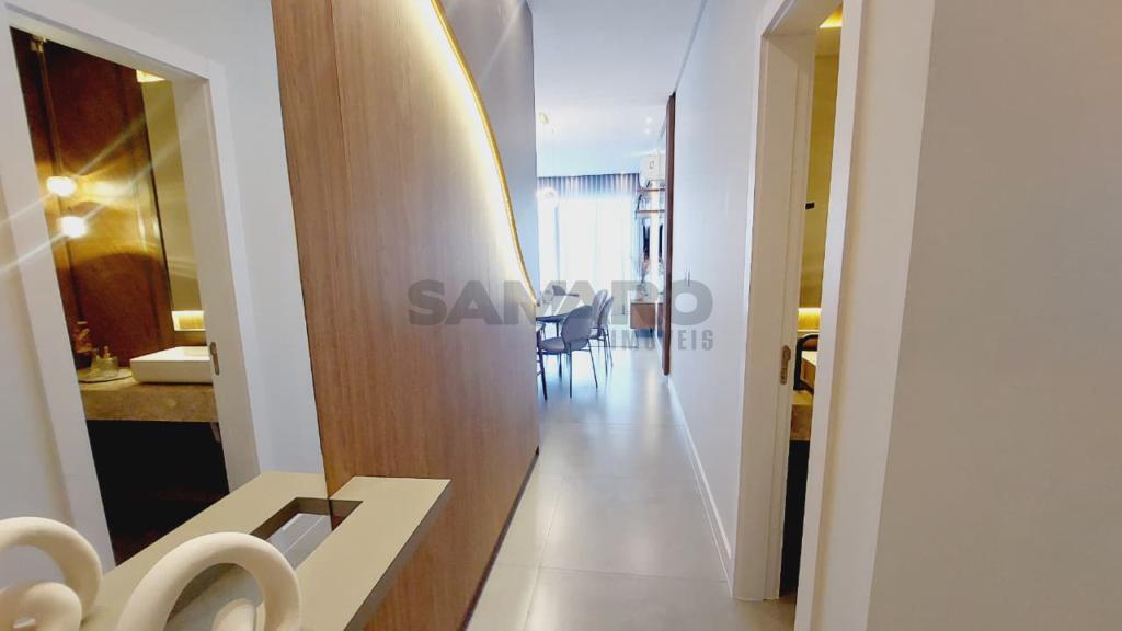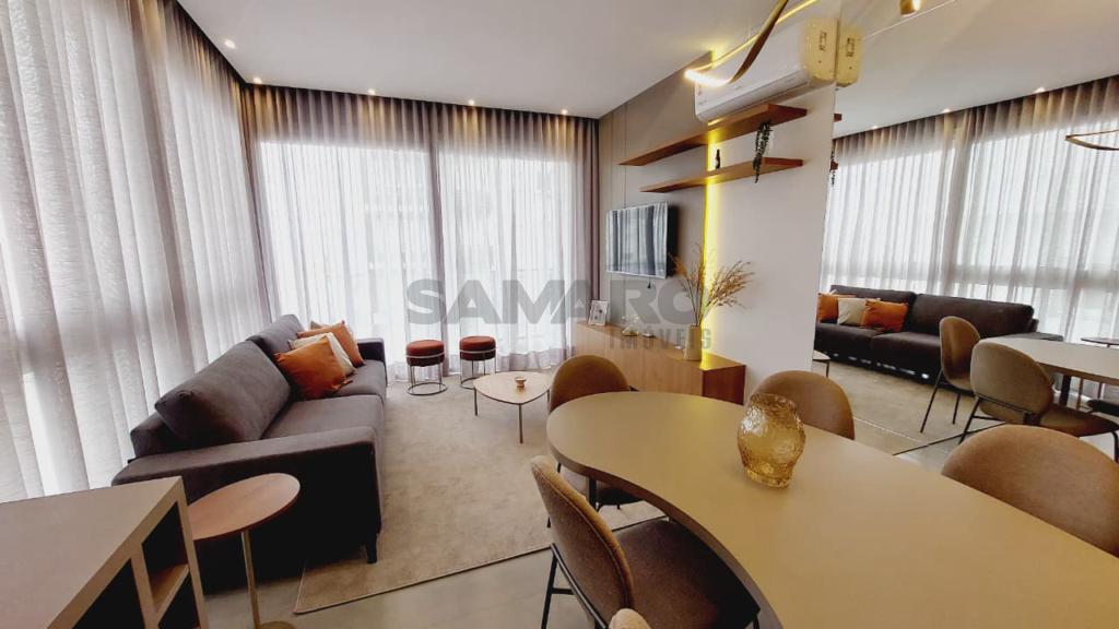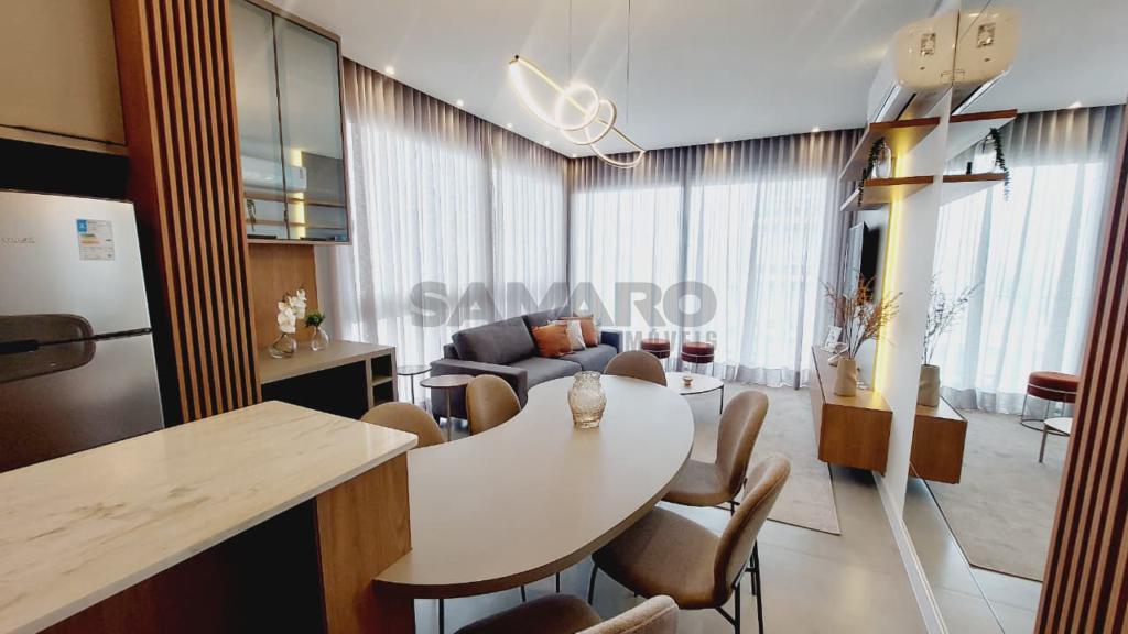 Apartamento de frente, com dois dormitórios sendo um suíte, banheiro social, living estar, jantar, cozinha, lavanderia independente, mobiliado, decorado e com uma vaga de garagem.