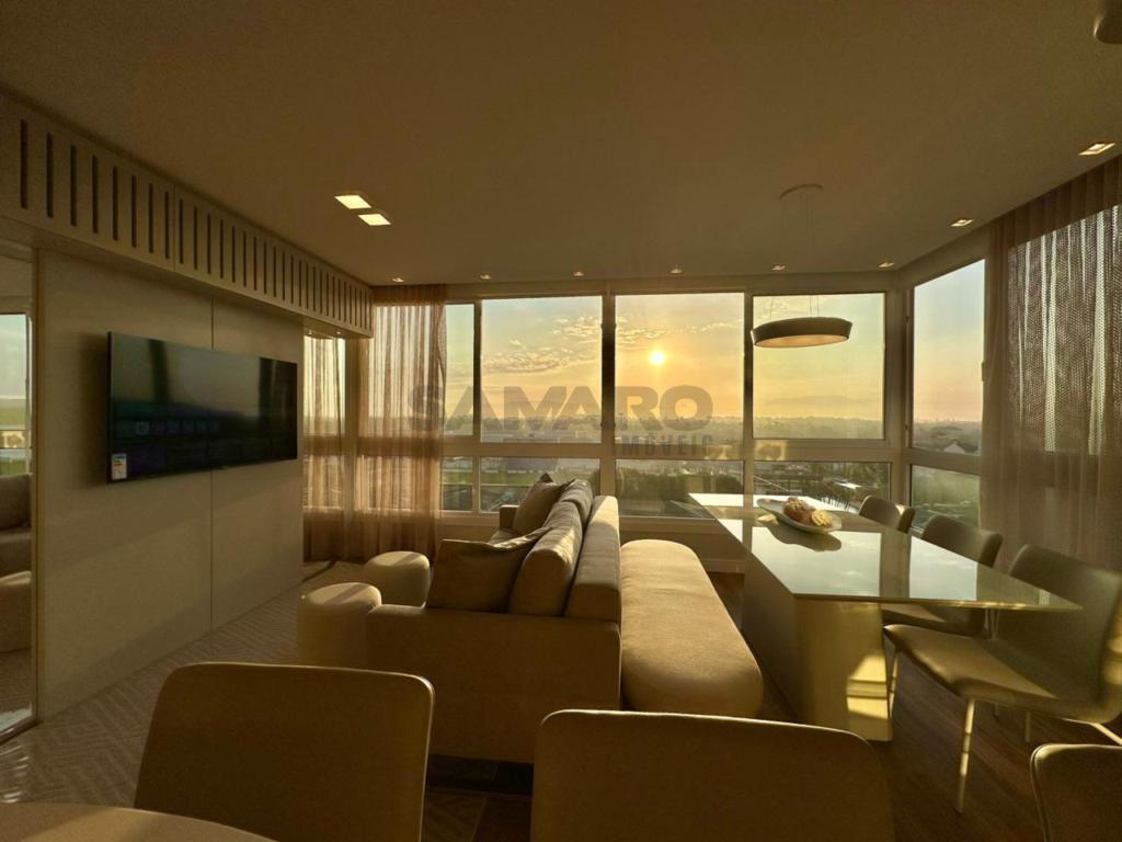 Mobiliado e decorado, composto por 2 quartos sendo 2 suítes, lavabo, living em dois ambientes, cozinha estilo americana, churrasqueira, uma vaga de garagem, espera para água quente e ar condicionado split, água quente, medidores de gás e água individuais.
