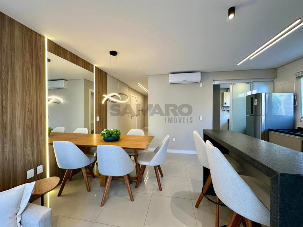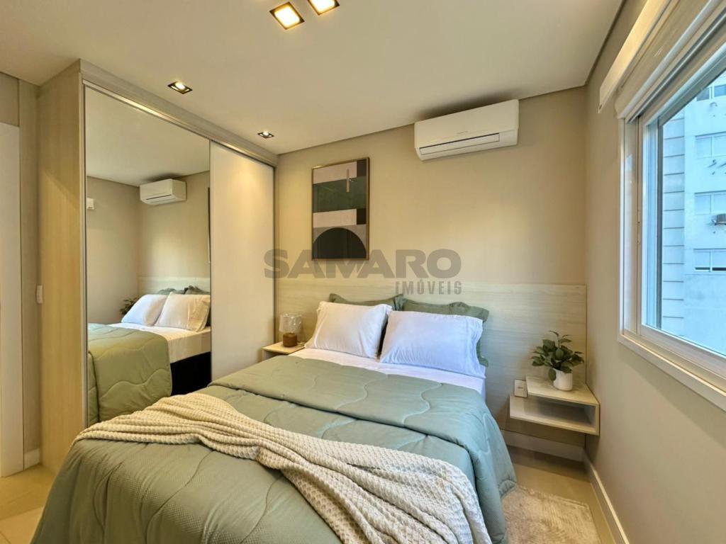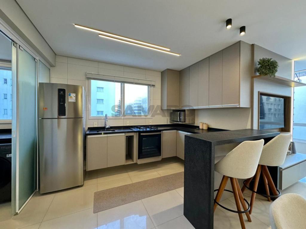 02 dormitorios, 01 suíte, banheiro social, living estar, jantar, cozinha estilo Americana com churrasqueira, lavanderia separada, finamente mobiliado, uma vaga de garagem.