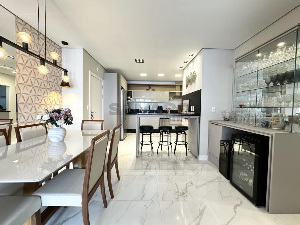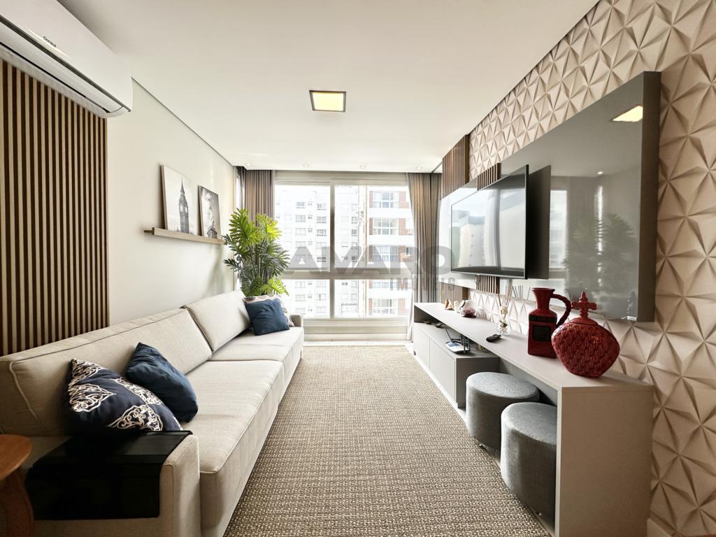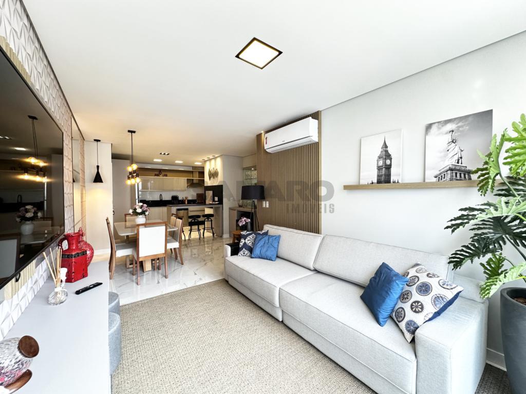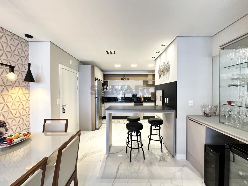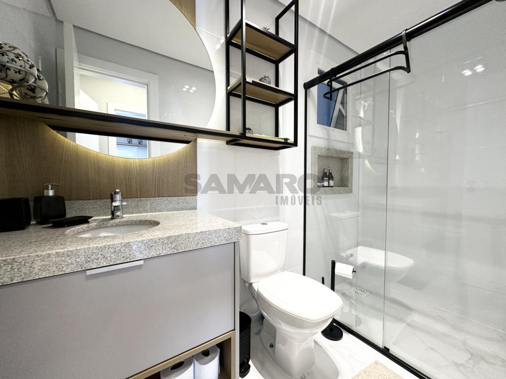 02 dormitorios, banheiro social, living estar, jantar, cozinha estilo Americana com churrasqueira, lavanderia separada, finamente mobiliado, uma vaga de garagem.