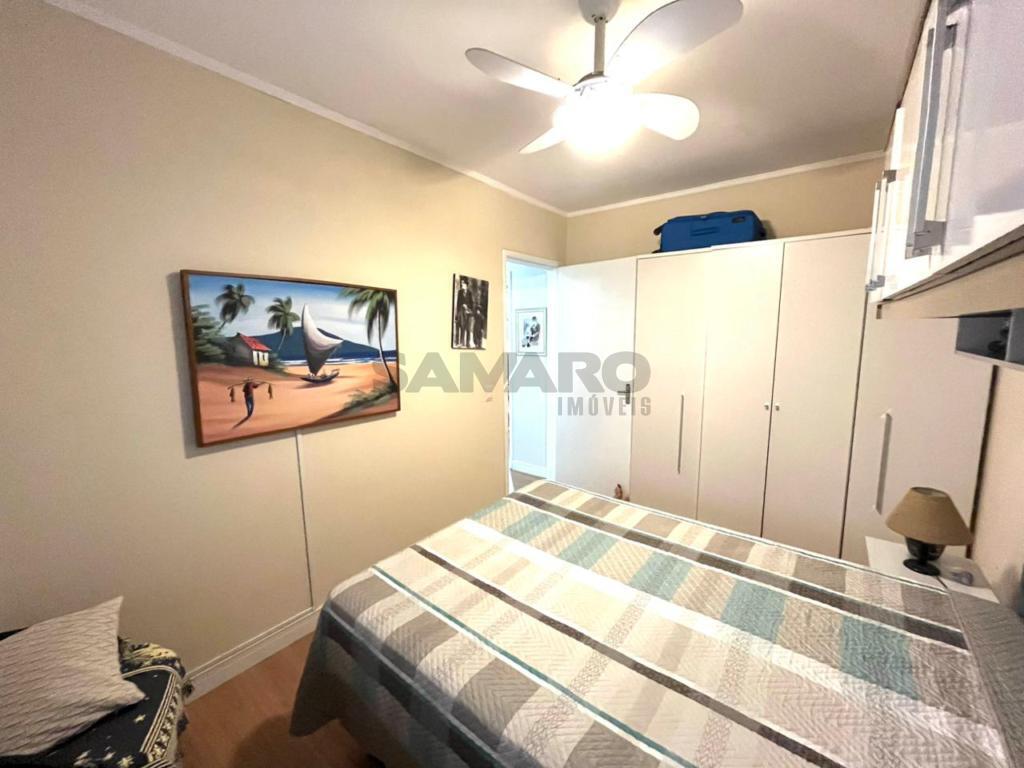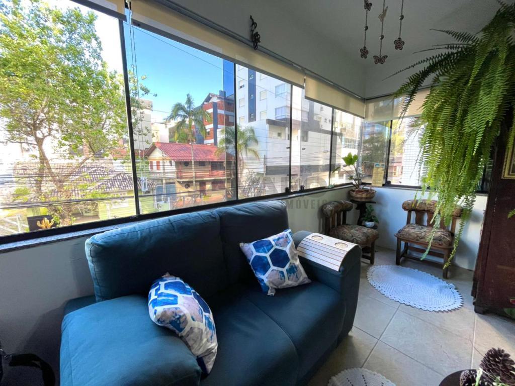 Edifício com elevador e zelador, 2 dormitórios de frente, frente leste, sala de estar e jantar, sacada integrada, mobiliado, suíte, banheiro social, garagem para 1 carro, 350 metros do mar.