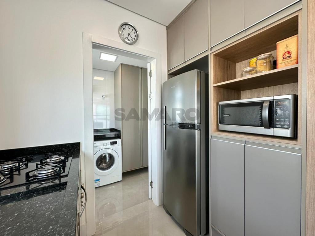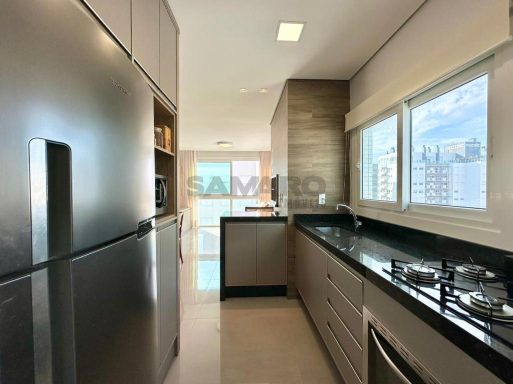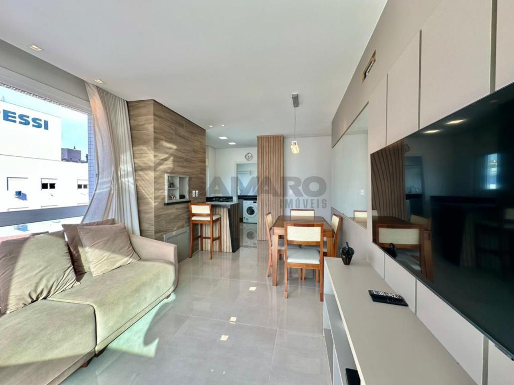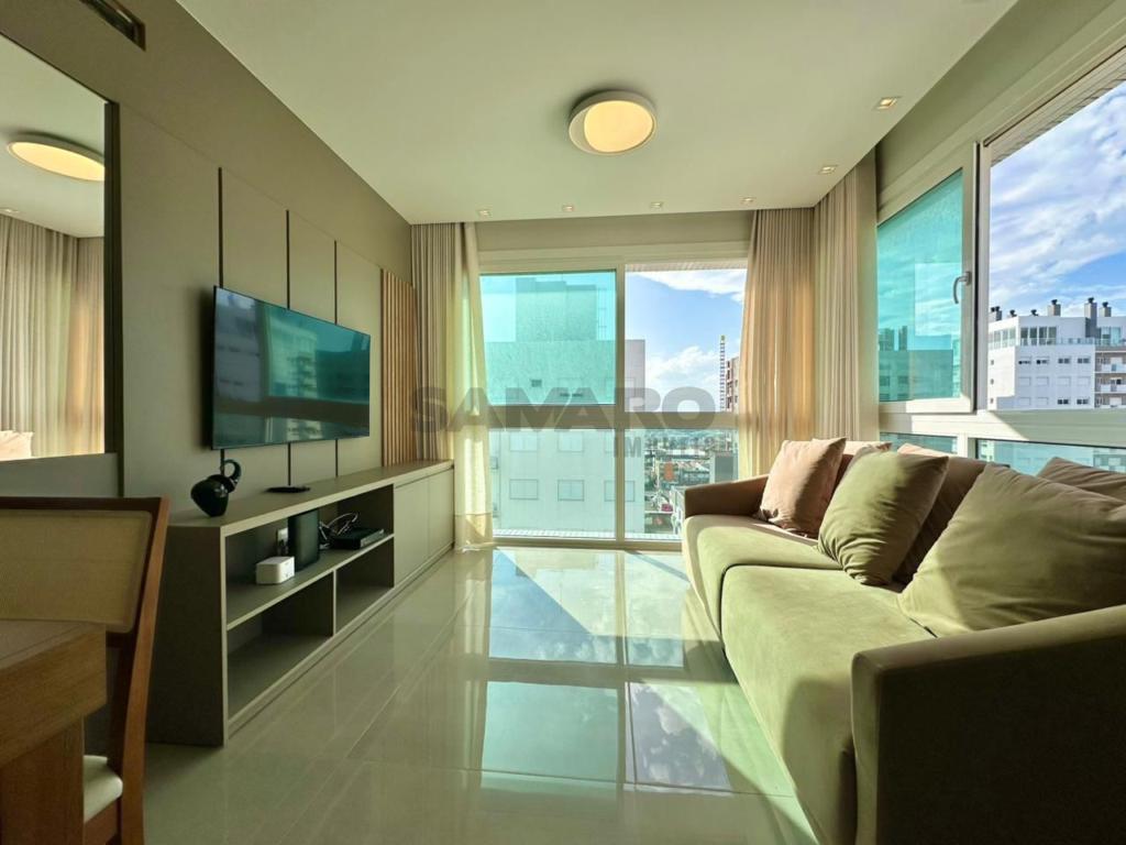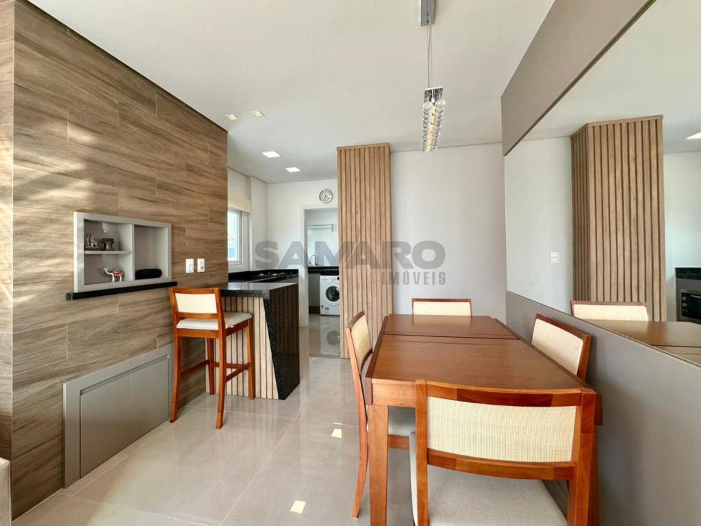 Apartamento com 02 dormitórios, sendo 01 suíte, banheiro social, de frente, com linda vista, mobiliado e decorado. Cozinha, churrasqueira e área de serviço separada. Piso porcelanato e água quente.