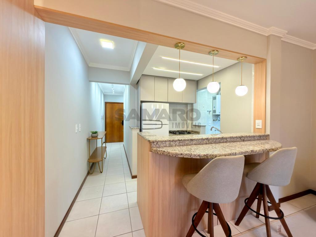 Apartamento com 2 dormitórios amplos, suite, banheiro social, cozinha separada, lavanderia, churrasqueira, vaga para o carro. Apartamento mobiiado, água quente, móveis sob medida, bem iluminado.