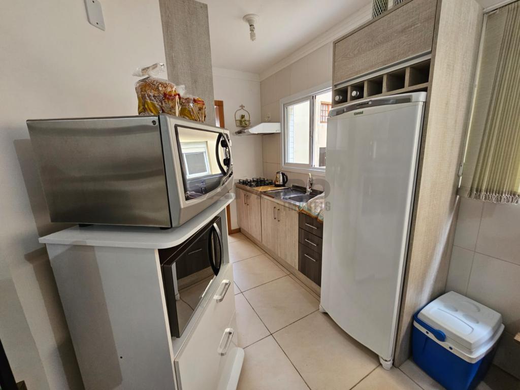 Apartamento 2 dormitórios sendo um suíte, banho social, todas as peças com ventilação direta, living em 2 ambientes, cozinha americana, lavanderia, garagem, mobiliado e decorado, três orientações solares Leste/Norte/Sul e uma vaga de garagem.