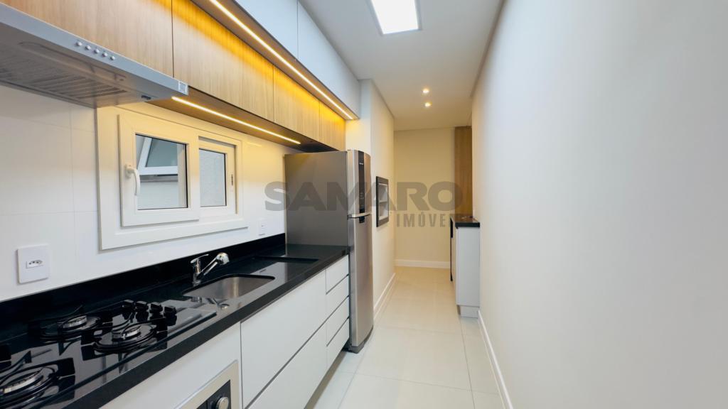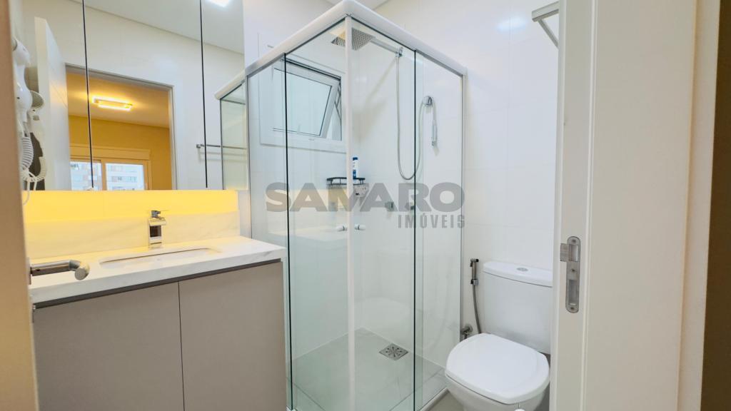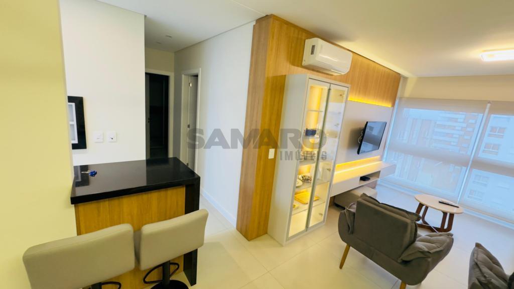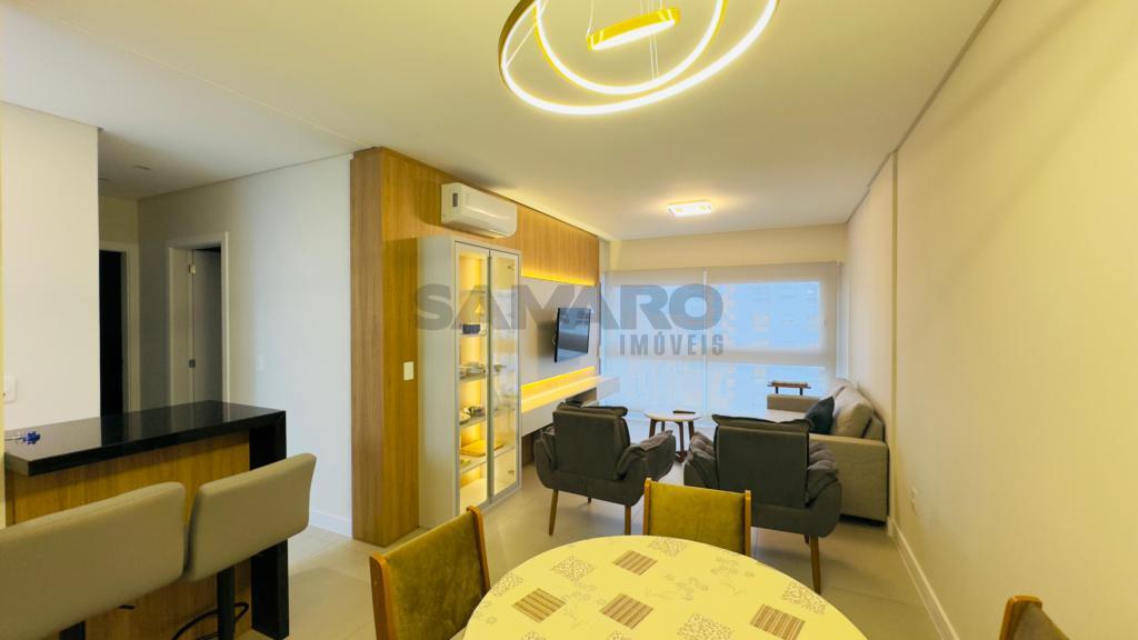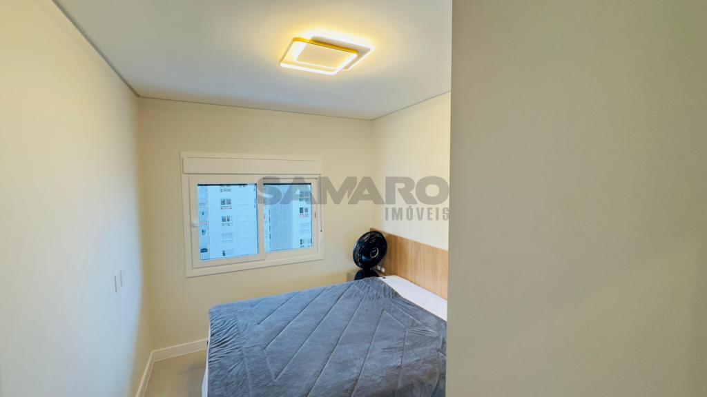 Apartamento de 02 dormitórios sendo um (01) suíte, banheiro social, living estar, jantar, de frente, cozinha, churrasqueira, lavanderia separada, orientação solar oeste e uma vaga de garagem.