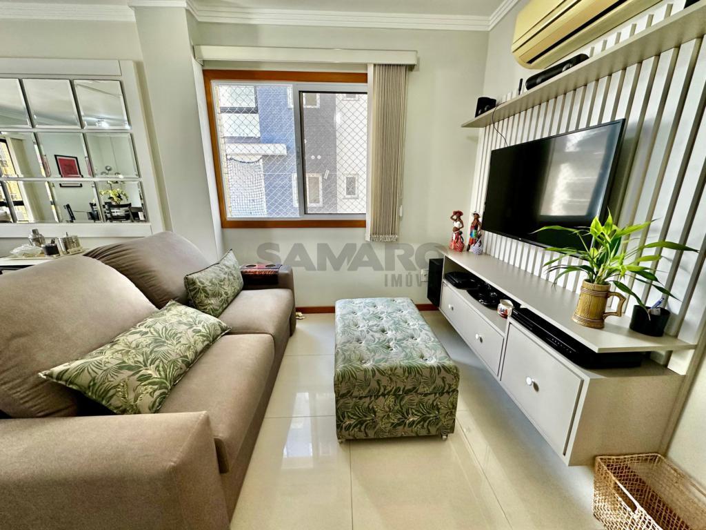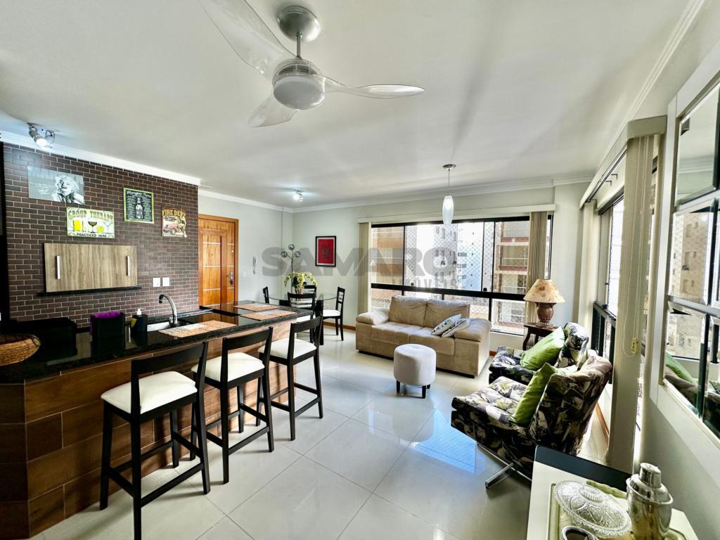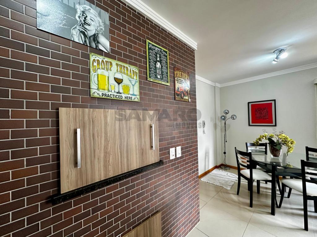 2 dormitórios de frente, sala de estar e jantar, cozinha americana, lavanderia, garagem para carro, sacada integrada com churrasqueira, suíte, banheiro social, esta completamente mobiliado.