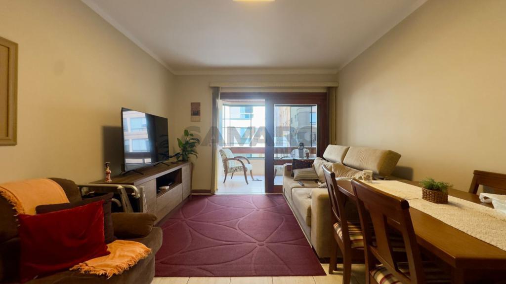 Apartamento com 2 dormitórios, suíte, banheiro social, cozinha separada, living em dois ambientes, lavanderia separada, churrasqueira e uma vaga de garagem.