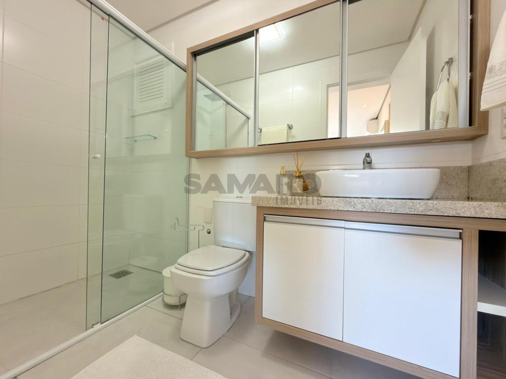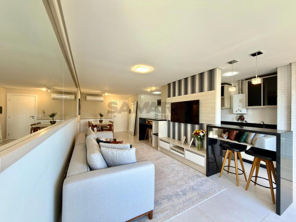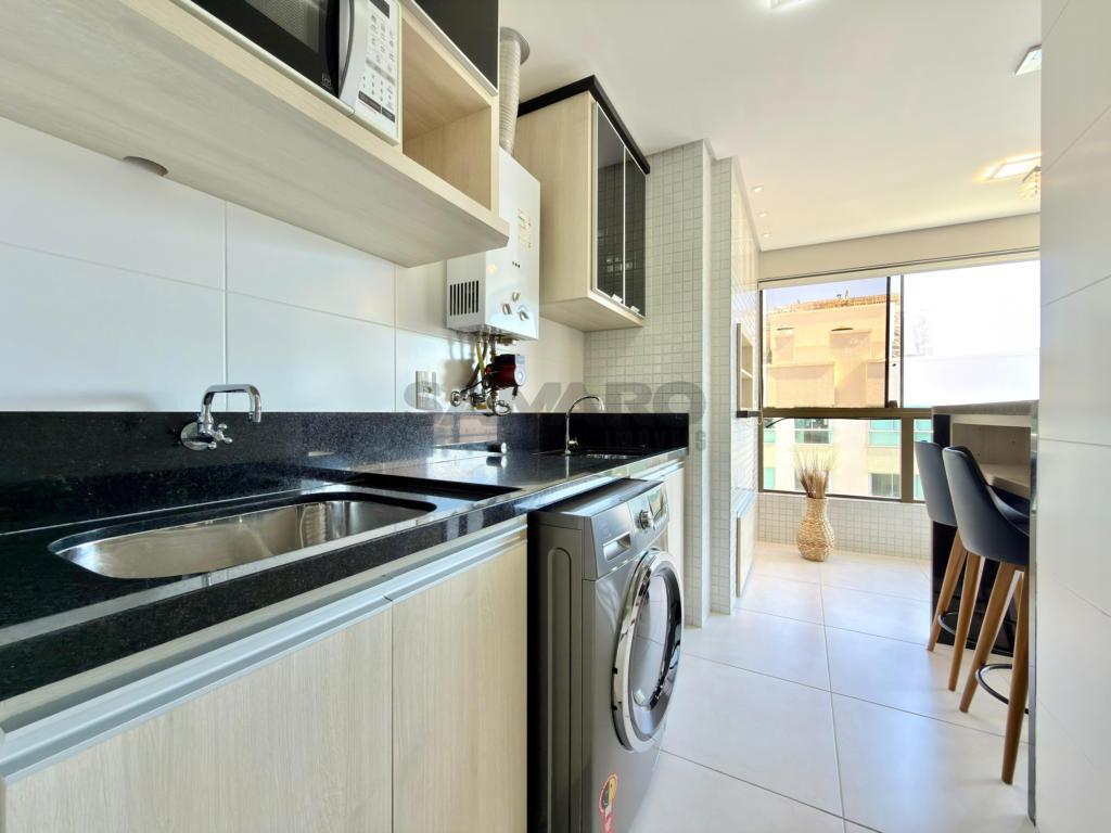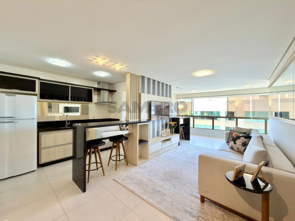 Apartamento de 02 quartos (sendo um suíte), banheiro social, living em dois ambientes, sacada integrada com churrasqueira, cozinha estilo americana, uma vaga de garagem, mobiliado, todos os ambientes climatizados, água quente e gás central, medidores de água e gás individuais.