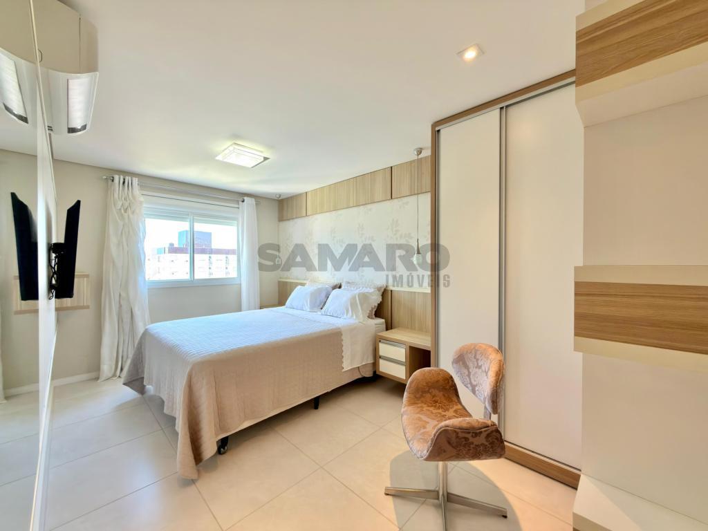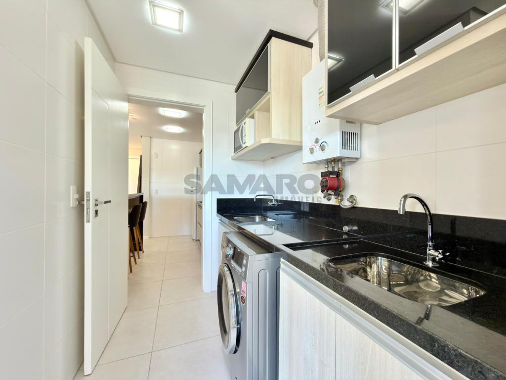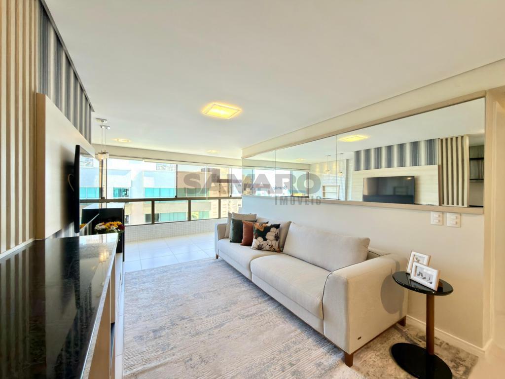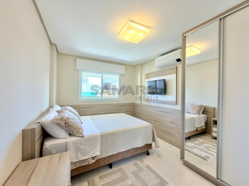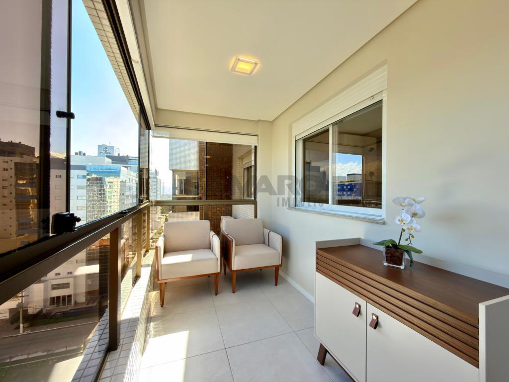Apartamento de 02 quartos (sendo um suíte), banheiro social, living em dois ambientes, sacada integrada com churrasqueira, cozinha estilo americana, uma vaga de garagem, mobiliado, todos os ambientes climatizados, água quente e gás central, medidores de água e gás individuais.
