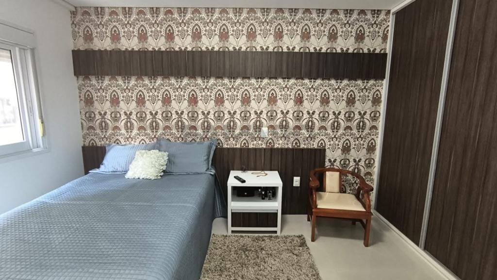 2 dormitórios com suíte, sala de estar e jantar, cozinha americana, banheiro social, garagem para carro, lavanderia, totalmente mobiliado.