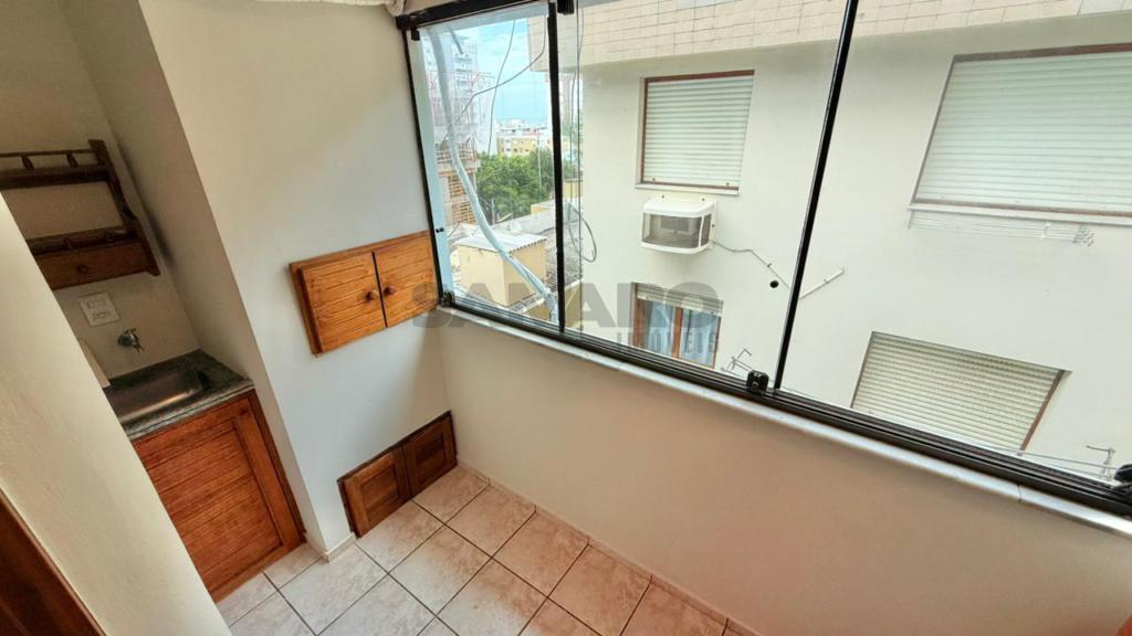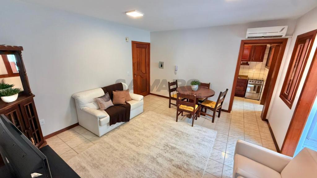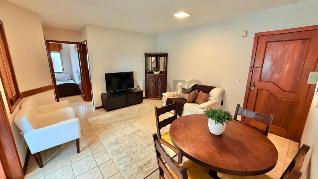 Apartamento com 02 quartos, living em dois ambientes, sacada lateral com churrasqueira, cozinha separada, área de lavanderia e banheiro social.