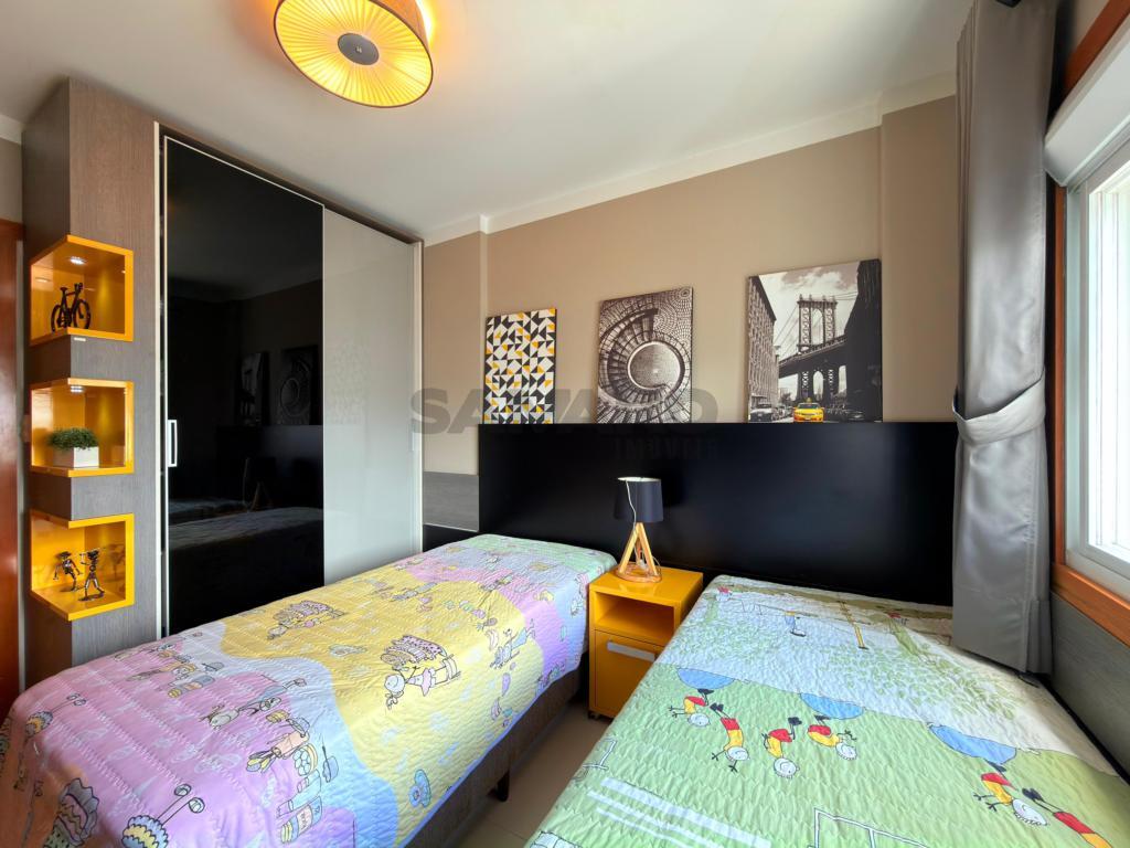 Apatamento com 3 dormitórios (sendo 1 suíte), sala de estar/jantar, cozinha estilo americana, amplo living, área de serviço e banheiro social. Conta também com sacada, churrasqueira, duas vagas de garagem mais depósito.