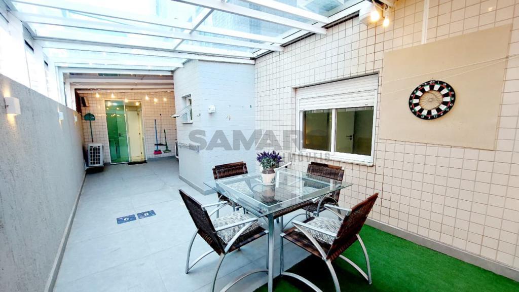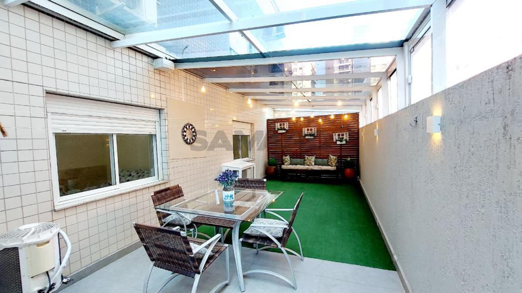 Apartamento com 210,92 metros de área total, de frente com 03 quartos (sendo um suíte), banheiro social, living em três ambientes amplos e integrados, cozinha estilo americana, churrasqueira, área de lavanderia, amplo terraço, duas vagas de garagem individuais, espera para água quente e ar condicionado split, medidores de água e gás individuais, posição solar leste/norte(sol da manhã ).