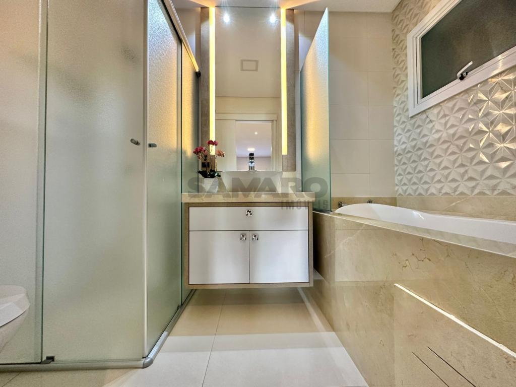 Duas garagem para 4 carros, amplo apartamento 3 dormitorios, 1 suite master, banho social com duas cubas, lavabo, sala de jantar e jantar integrada a sacada de frente com, area de churrasco, lavanderia separada, ar condicionado split, tv´s smart, mobiliado e decorado, cervejeiras, bancadas em granito, persianas automatizadas, orientação leste/norte, infraestutura completa de lazer.