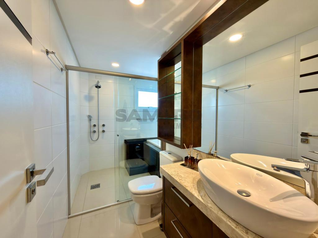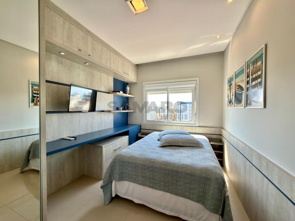Apartamento com 03 dormitórios, sendo um suíte master, um banheiro social e um lavabo, living estar/jantar com churrasqueira, cozinha, lavanderia.