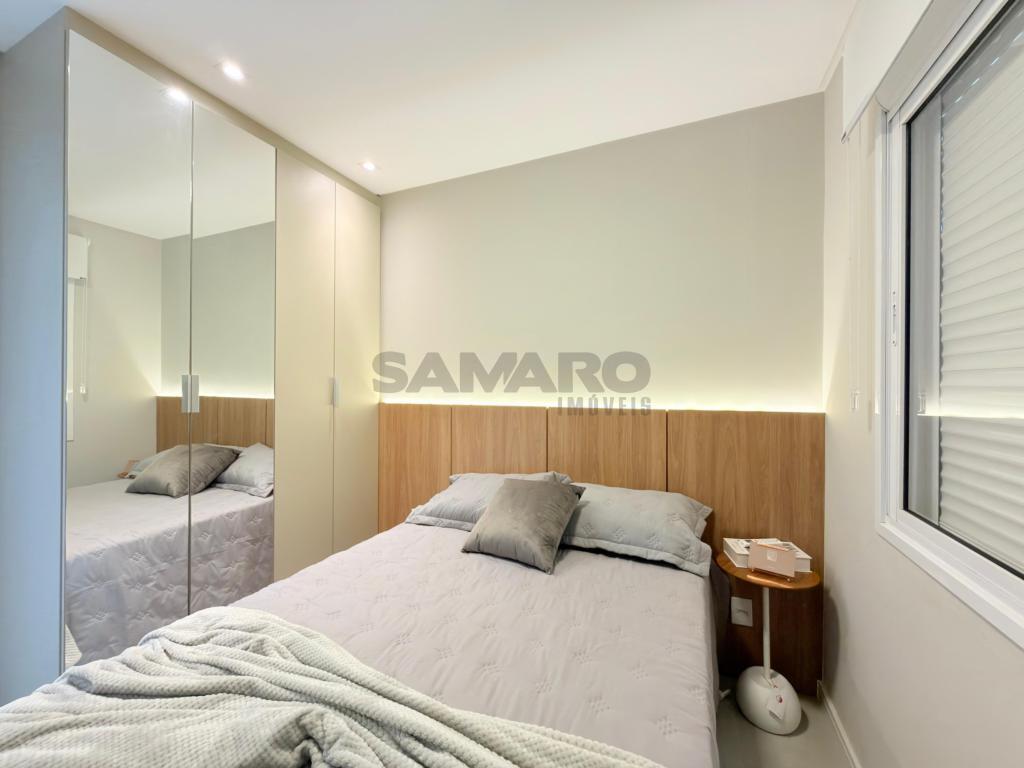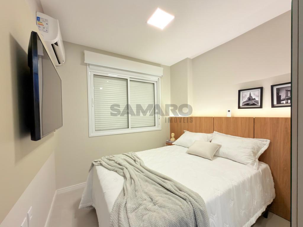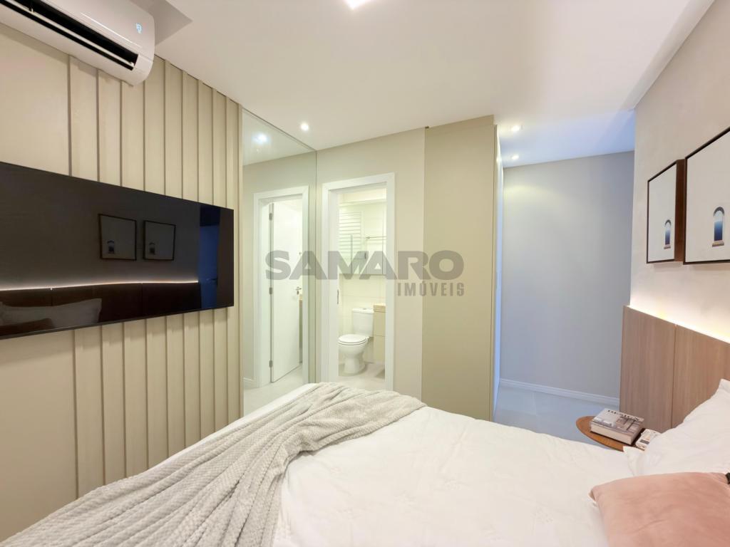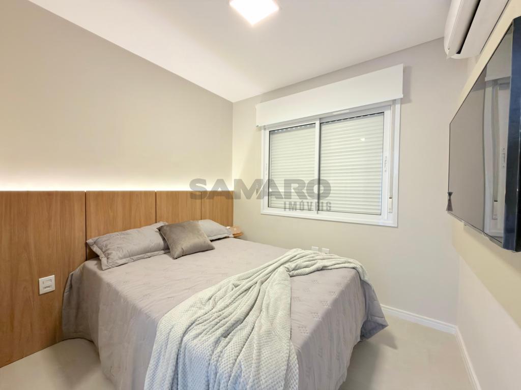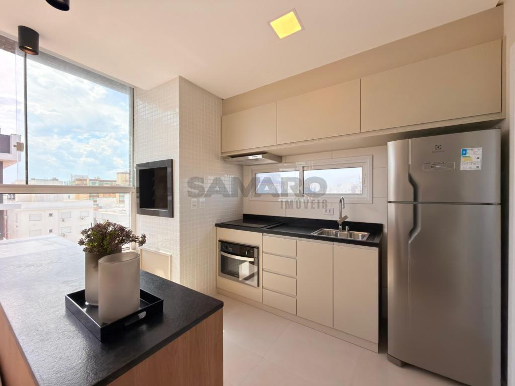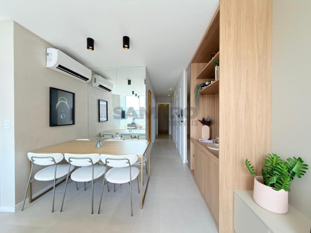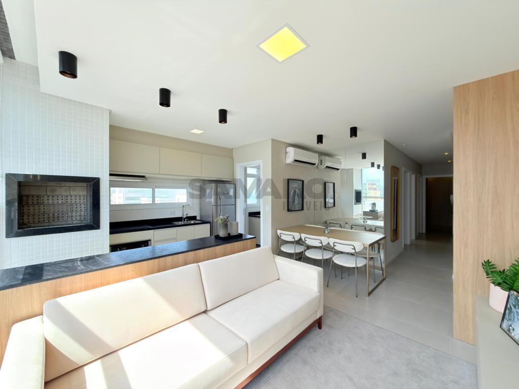Apartamento com 03 dormitórios, sendo uma suíte, banheiro social, living integrando estar, jantar, cozinha estilo americana, churrasqueira, lavanderia separada, todo mobiliado, área total de 124,61m², vaga de garagem.
